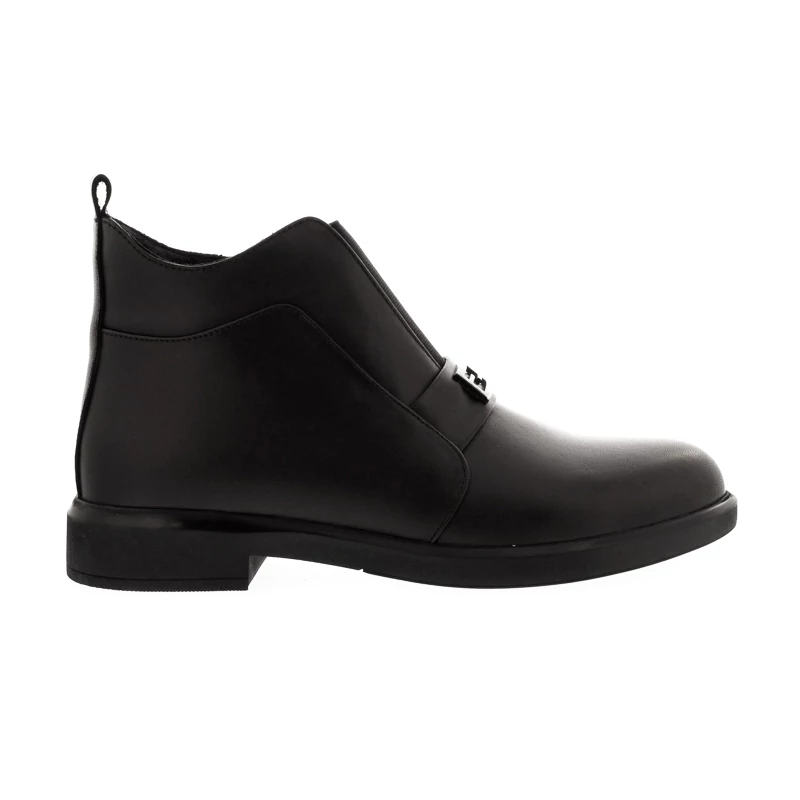 Ez a bokacipő a visszafogott elegancia és a mindennapi kényelem tökéletes párosítása. Felsőrésze természetes bőrből készült, modern részletként a felsőrész közepén elhelyezett csat díszítéssel. Bélése puha textil, talpa gumi. Sarokmagassága 30 mm. Ideális választás mindennapi viseletre. Sebastiano cipő webáruház Női cipő