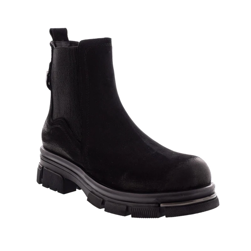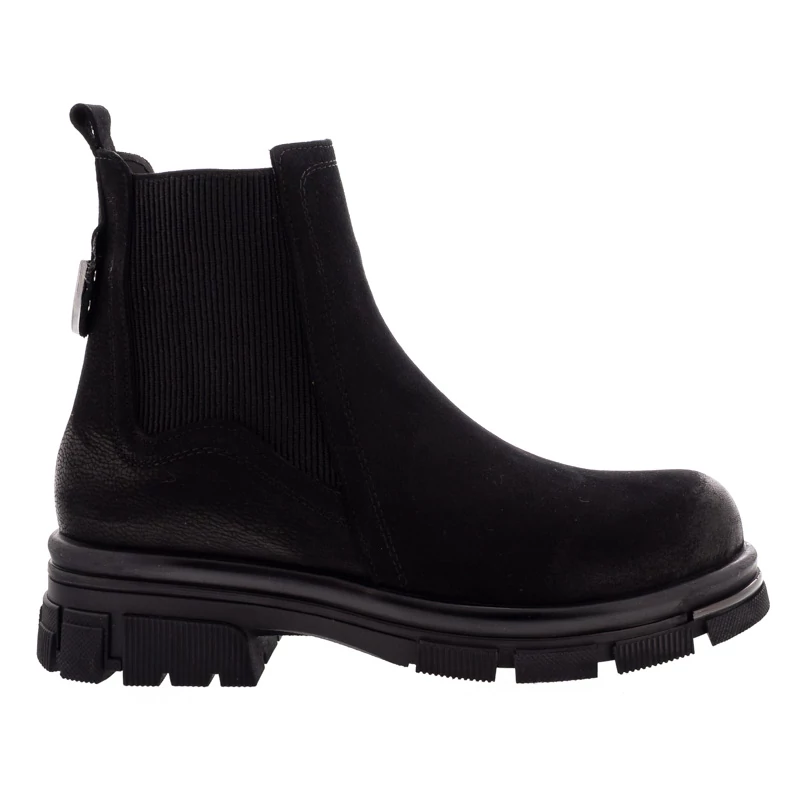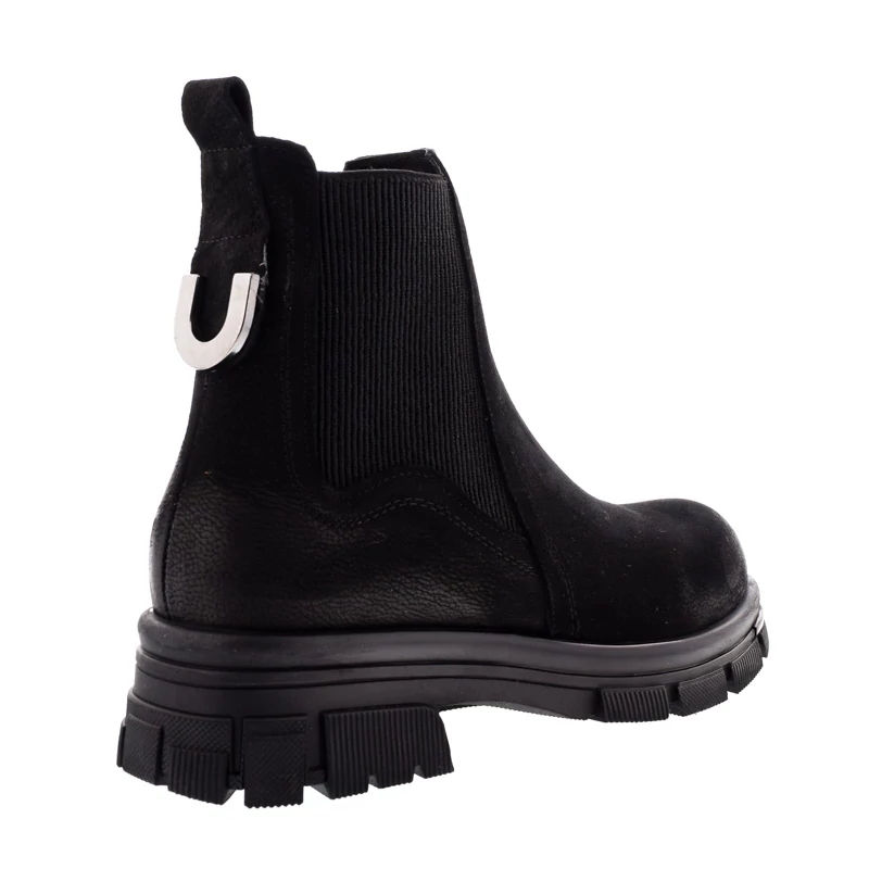 Ez a fiatalos, stílusos bokacsizma modern megjelenést és kényelmes viseletet kínál. Fűző nélküli, bebújós kialakítása kétoldali rugalmas gumibetétnek köszönhetően könnyen felvehető és jól illeszkedik a lábra. Felsőrésze letisztult hatású, hátul a sarok fölötti fém díszítés teszi különlegessé. Textil bélése és a puha talpbetét komfortot biztosít egész nap. Masszív, vastag gumi talpa 45/25 mm (sarokmagasság/talpmagasság). Ideális választás a hétköznapokra, fiatalos, trendi összeállításokhoz. Sebastiano cipő webáruház Női cipő