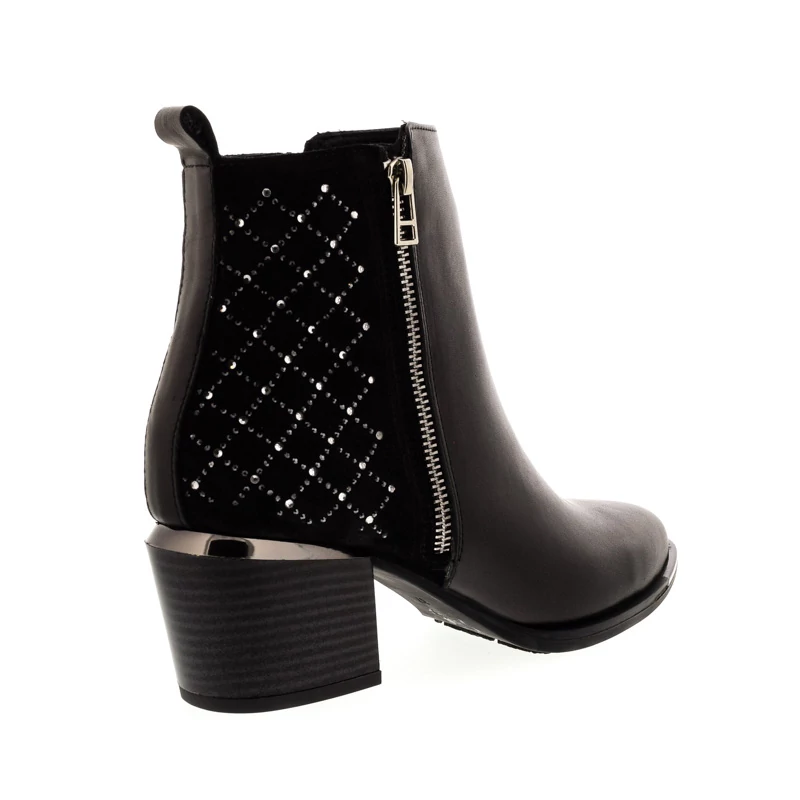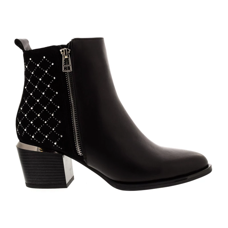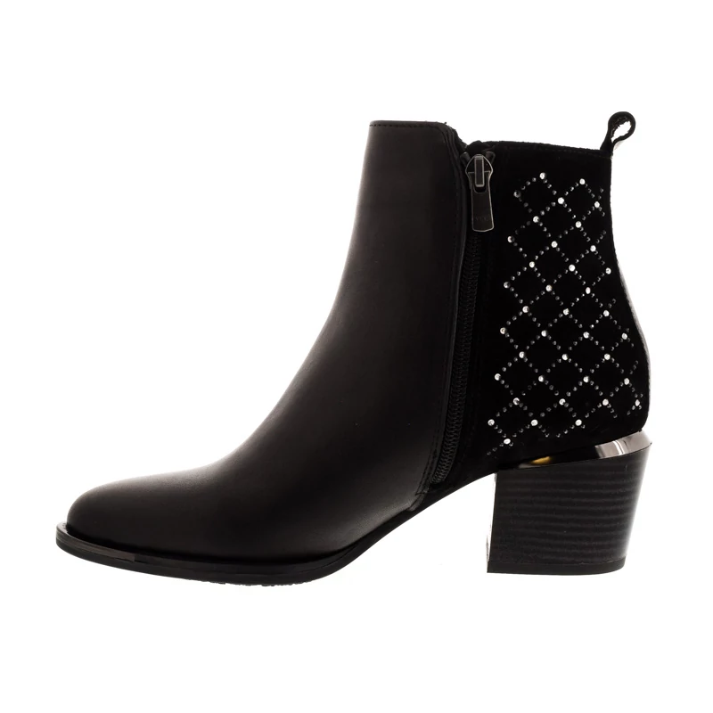 Ez az Albini bokacsizma modern részleteivel és nőies megjelenésével tűnik ki. Felsőrésze prémium minőségű, természetes bőrből készült, melyet hátul velúrbőr betét egészít ki, strassz díszítéssel feldobva a megjelenést. Kétoldalt cipzáros kialakítása mutatós részletként szolgál. Textil bélése kellemes komfortot nyújt. A sarok formája veszkó hatású, sarokmagassága 60 mm.Tökéletes választás alkalmi és hétköznapi összeállításokhoz egyaránt. Sebastiano cipő webáruház Női cipő