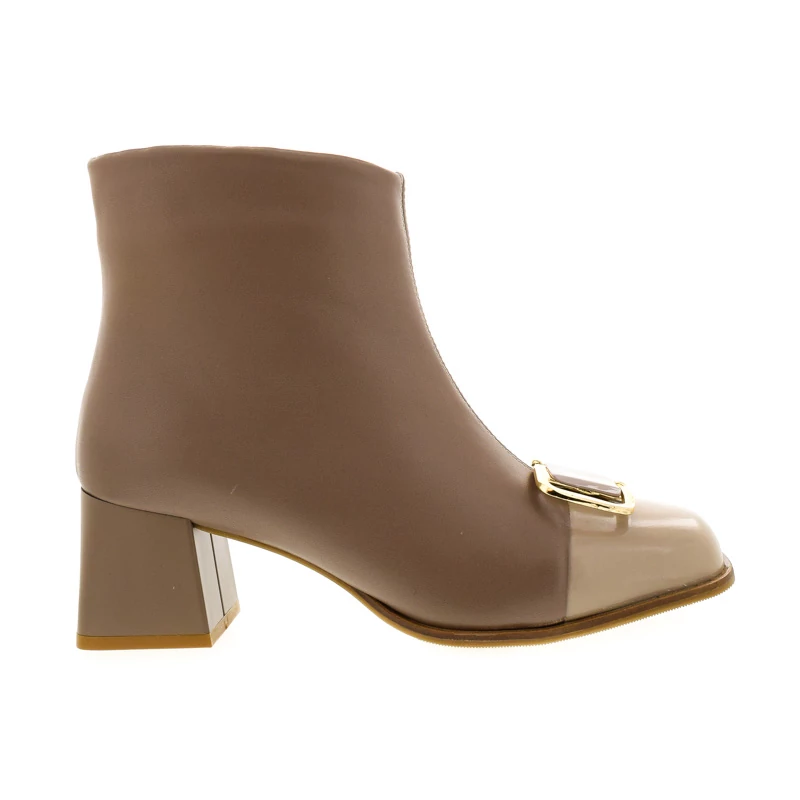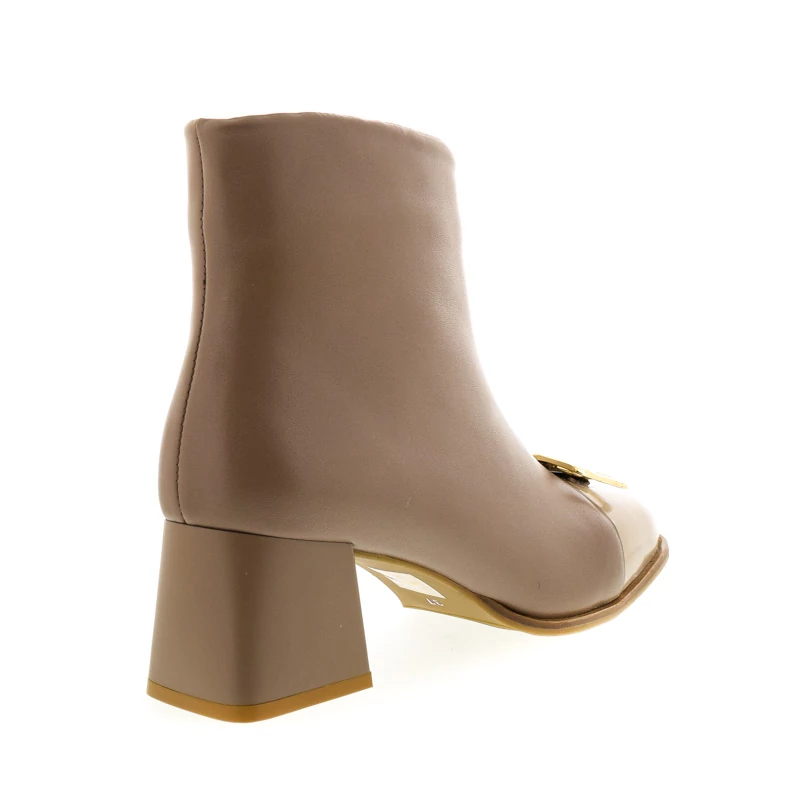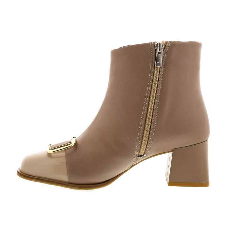Ez a női bokacsizma elegáns és kifinomult stílust képvisel. Szögletes, varrott orr-része modern, mégis klasszikus hatást kelt, melyet az arany színű csat díszítés tesz különlegessé. Textil bélése kényelmes viseletet biztosít, talpa gumi. Sarokmagassága 60 mm, a blokk sarok stabil járást biztosít. Ideális választás alkalmakra és elegáns hétköznapi összeállításokhoz. Sebastiano cipő webáruház Női cipő