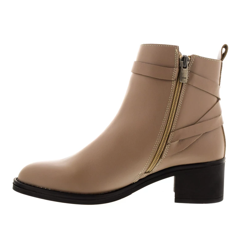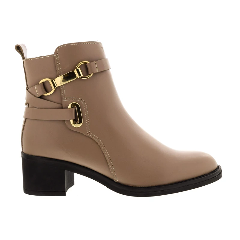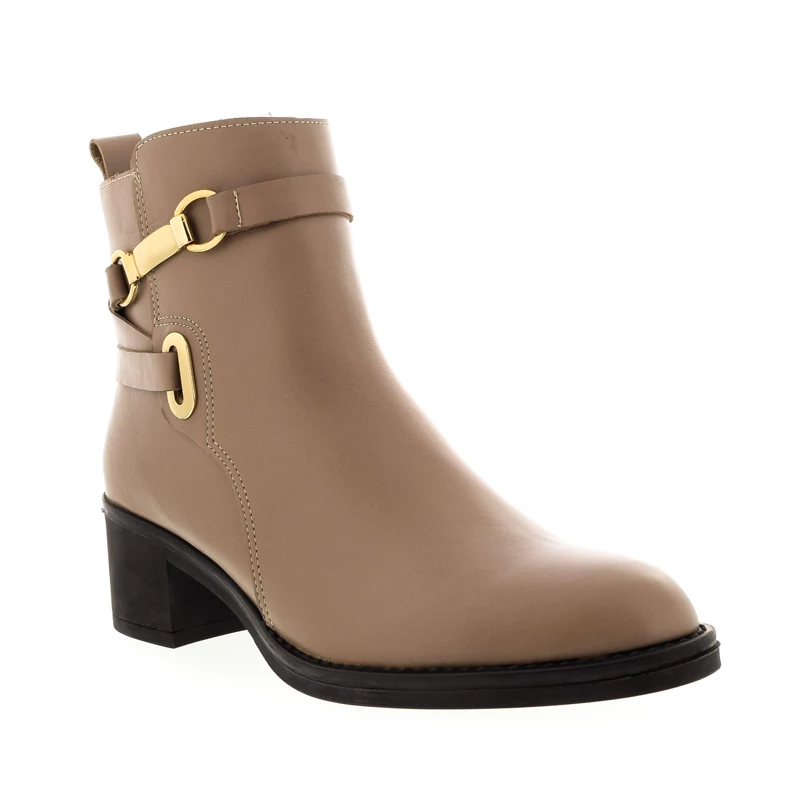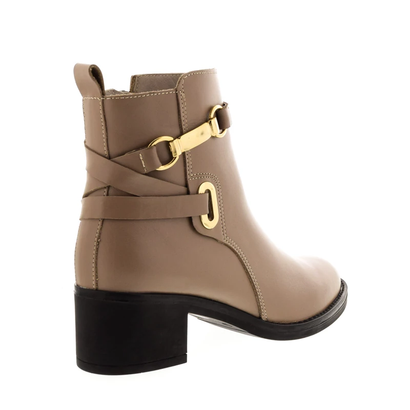Ez az Albini márkájú bokacsizma kifinomult stílust és kényelmes viseletet kínál. Felsőrésze prémium minőségű, természetes bőrből készült. Az arany csat és a körbefutó pánt díszítés modern, egyedi megjelenést kölcsönöz a modellnek. Bélése puha textil, talpa műanyag, mely tartós és könnyed járást biztosít. Sarokmagassága 50 mm magas, amely stabil tartást és nőies megjelenést garantál. Tökéletes választás elegáns hétköznapi összeállításokhoz. Sebastiano cipő webáruház Női cipő