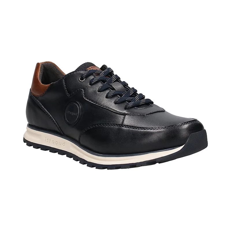 A sötétkék színű Bugatti Férfi Félcipő elegáns és kényelmes viseletet biztosít minden férfi számára. Prémium minőségű anyagai és kifinomult kidolgozása garantálja a stílusos megjelenést és a tartósságot. Tökéletes választás hétköznapi és alkalmi viselethez egyaránt. Sarokmagassága 27 mm. Sebastiano cipő webáruház Bugatti
