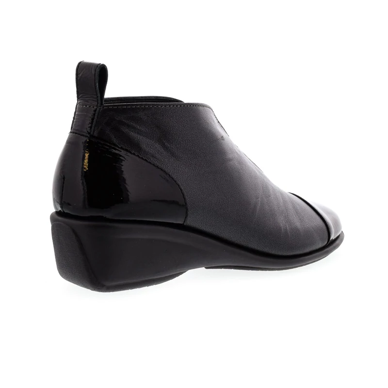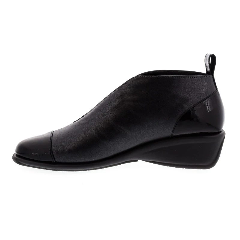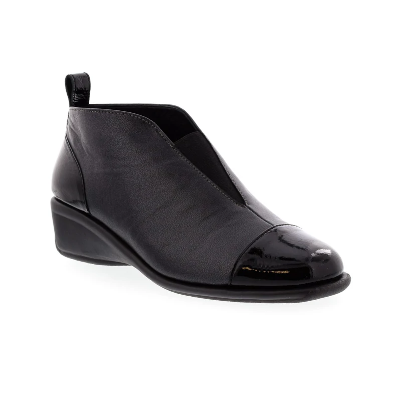 Ez a DFC Relax bokacipő kifinomult megjelenést kölcsönöz viselőjének. A felsőrész kíváló minőségű természetes bőr és lakkbőr kombinációja. A puha anyagból kialakított természetes bőr talpbetét rendkívül jól alkalmazkodik a láb egyedi formájához és hozzájárul a kényelmes viselet érzetéhez. Talpa gumi, sarokmagassága 40 mm. Sarokkialakításának köszönhetően kényelmes, ideális választás elegáns hétköznapokra. Sebastiano cipő webáruház Női cipő