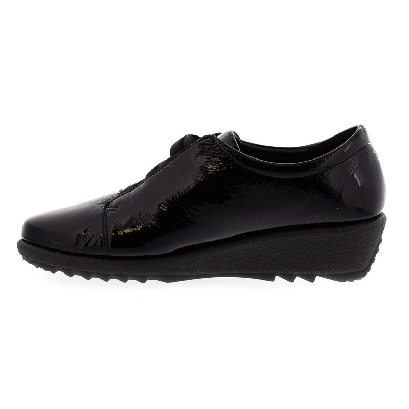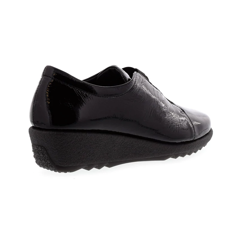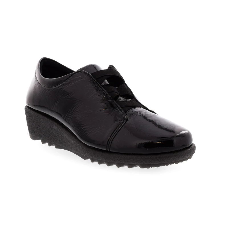 Ez a DFC Relax gumifűzős félcipő kifinomult megjelenést kölcsönöz viselőjének. Felsőrésze kíváló minőségű lakkbőrből készült. A puha anyagból kialakított természetes bőr talpbetét rendkívül jól alkalmazkodik a láb egyedi formájához, hozzájárul a kényelmes viselet érzetéhez. Talpa gumi, sarokmagassága 40 mm. Kényelmes sarokkialakításának köszönhetően ideális választás irodai viselethez, elegáns hétköznapokra. Sebastiano cipő webáruház Női cipő