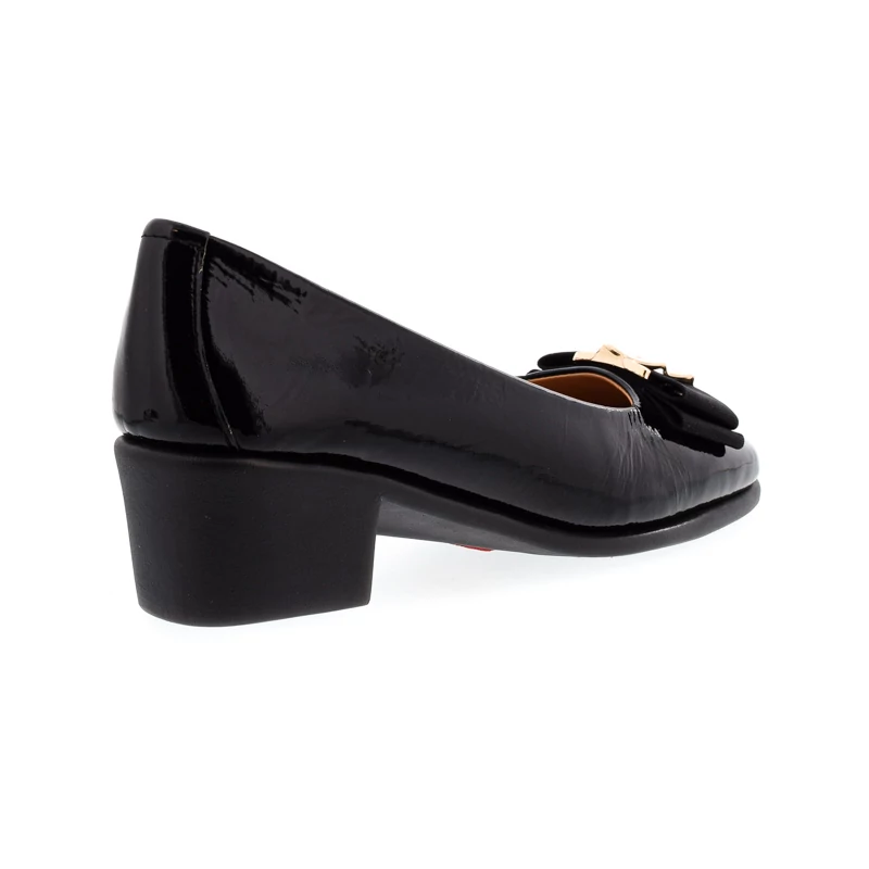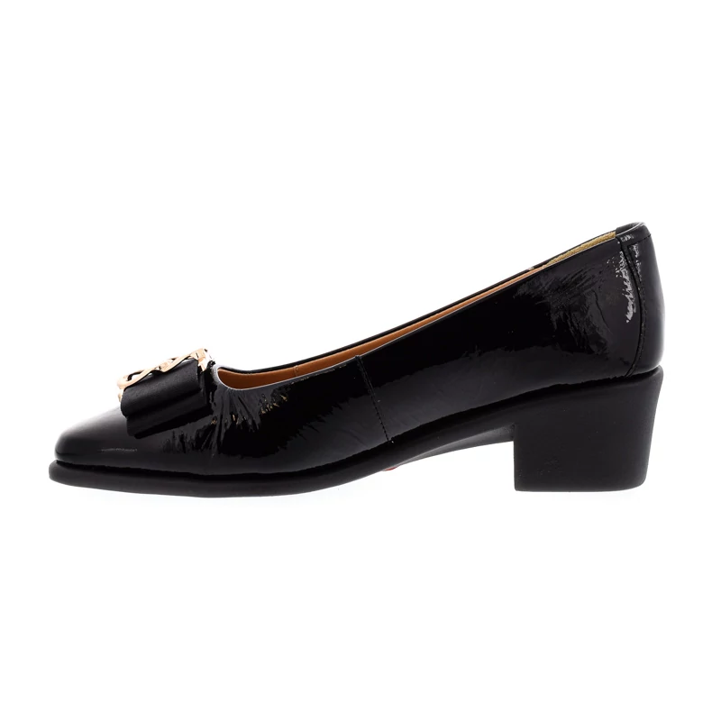 Ez a DFC Relax pumps félcipő elegáns és kifinomult megjelenést kölcsönöz viselőjének. Felsőrésze kíváló minőségű lakkbőrből készült, az orr-részen egy ízléses díszítéssel. A puha anyagból kialakított természetes bőr talpbetét rendkívül jól alkalmazkodik a láb egyedi formájához, hozzájárul a kényelmes viselet érzetéhez. Talpa gumi, sarokmagassága 45 mm. Kényelmes sarokkialakításának köszönhetően ideális választás irodai viselethez vagy elegáns hétköznapokra. Sebastiano cipő webáruház Női cipő