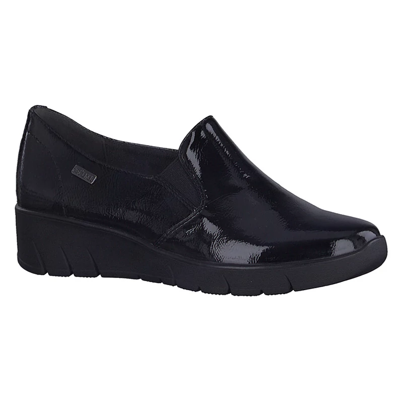 A lábbeli felsőrésze ekológikus bőr, míg bélése textil felhasználásával készült. A kaptafa H szélességű. A talp magassága a sarok részél 40 mm Sebastiano cipő webáruház Jana