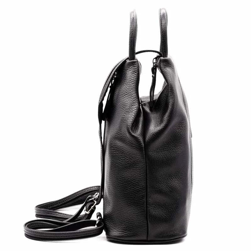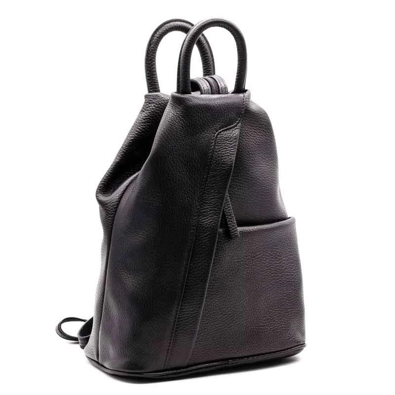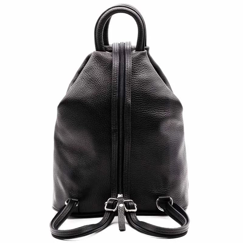 Bőr hátizsák. Egyterű belső kialakítás , belül egy sima és egy cipzáras zseb található. A belső részen két sima és egy zipzáras zseb található. A táska elején és hátulján egy egy cipzáras zseb, elején egy sima zseb került kialakításra. A vállpánt cipzárral ellátott, egypántos és kétpántos vállpántként is funkcionál. (Szélesség x magasság x mélység) 25x30x13cm Sebastiano cipő webáruház Táska