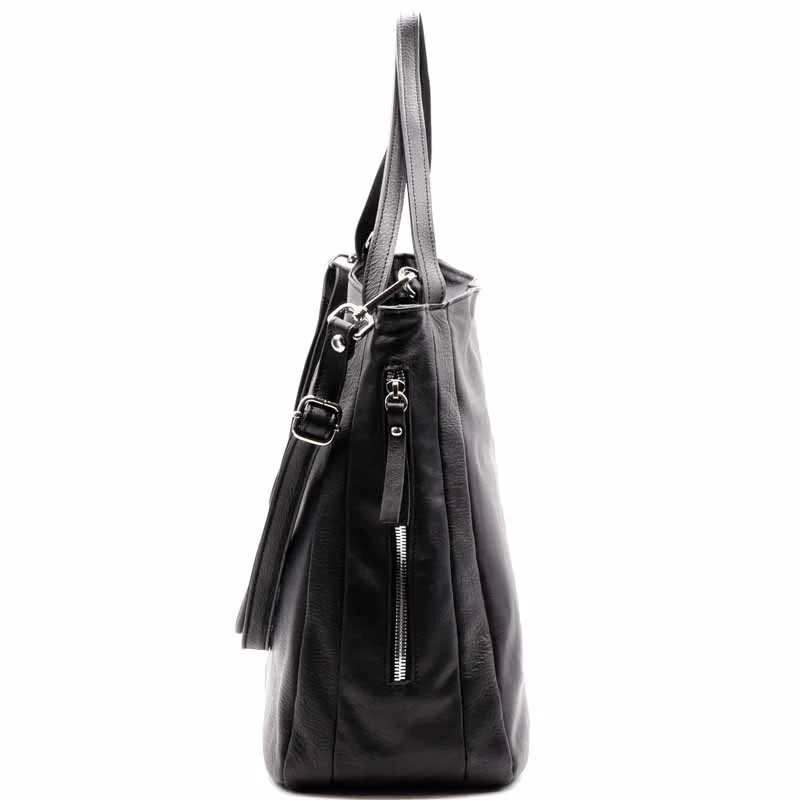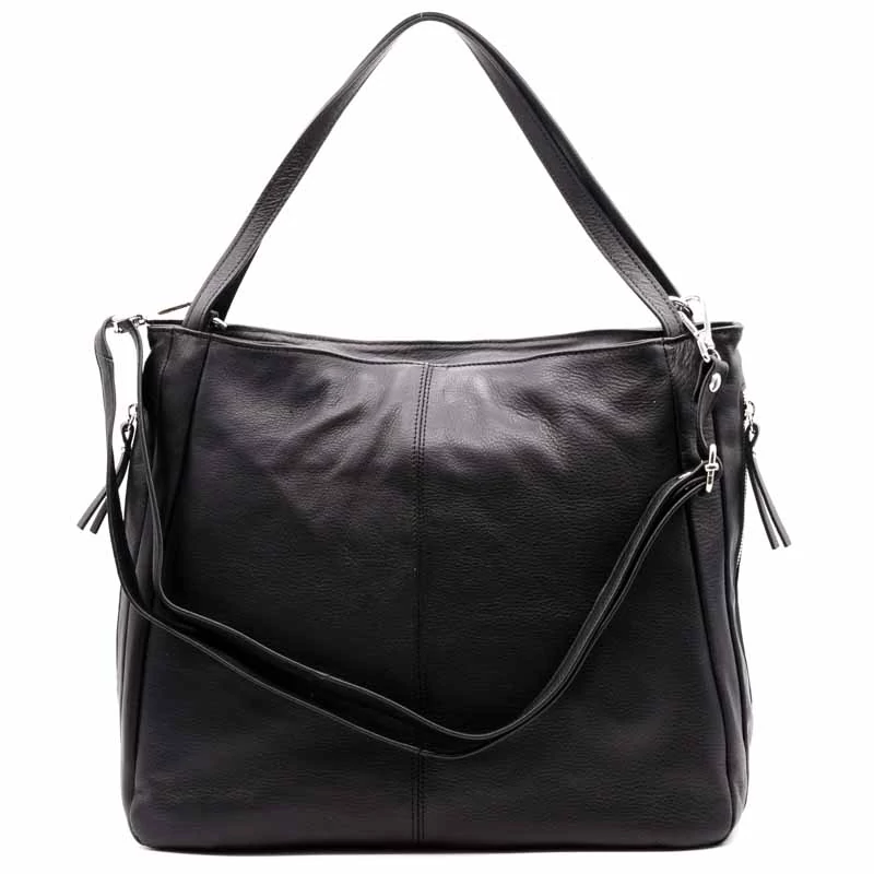 Puha valódi bőr válltáska, osztott terű belső kialakítással. A belső részben egy cipzáras rekeesz, egy cipzáras zseb és két sima zseb is található. A táska cipzárral záródik. Tartozék egy hosszú vállpánt . Két oldalon cipzáras zsebek. (Szélesség x magasság x mélység) 38x28x19cm Sebastiano cipő webáruház Táska