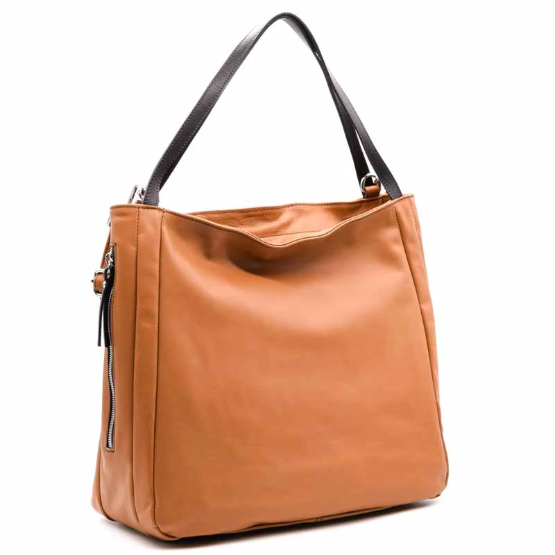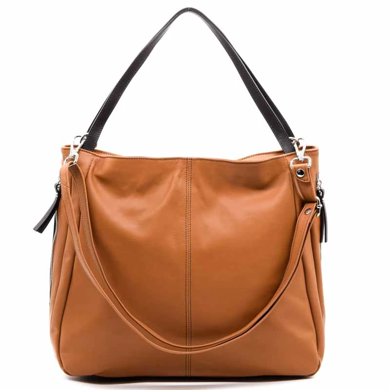 Puha valódi bőr válltáska, osztott terű belső kialakítással. A belső részben egy cipzáras rekeesz, egy cipzáras zseb és két sima zseb is található. A táska cipzárral záródik. Tartozék egy hosszú vállpánt . Két oldalon cipzáras zsebek. (Szélesség x magasság x mélység) 38x28x19cm Sebastiano cipő webáruház Táska