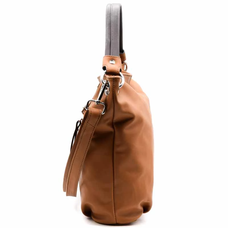 Olasz, valódi bőr válltáska, rövid és hosszú pánttal. A hosszú pánt lecsatolható. Osztott terű belső kialakítás, középen egy cipzáras rekesszel. A belső részben négy sima és egy cipzáras zseb található. A táska hátsó felén egy külső cipzáras zseb került kialakításra. A táskán két cipzáras oldalzseb könnyíti a pakolást (Szélesség x magasság x mélység) 37x28x13 cm Sebastiano cipő webáruház Táska