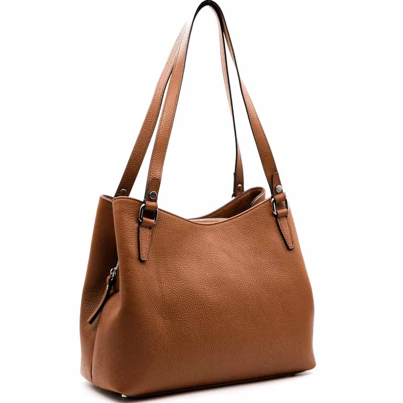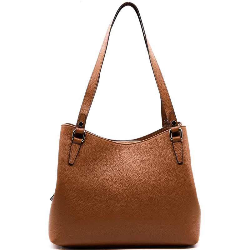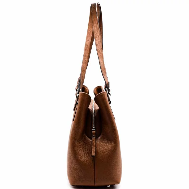 Olasz bőr válltáska. Osztott terű kialakítás,a középső rekesz cipzárral záródik, melynek belsejében két sima és egy cipzáras zseb található. a két rekesz patenttal záródik. A táska fix pántokkal rendelkezik. (szélesség x magasság x mélység)34x29x16 cm Sebastiano cipő webáruház Táska