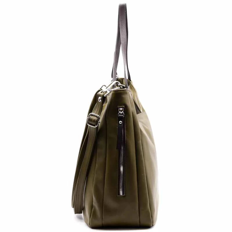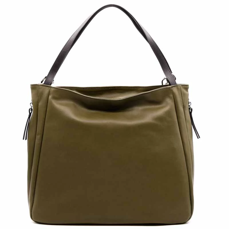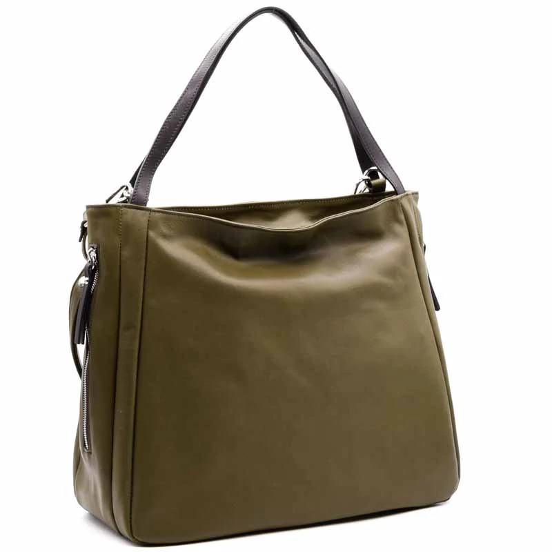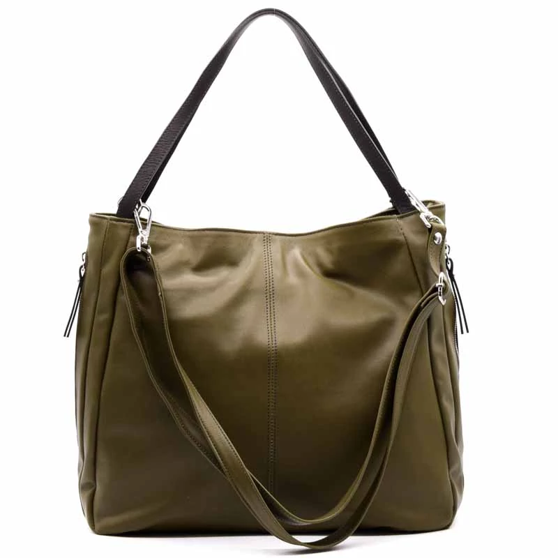 Puha valódi bőr válltáska, osztott terű belső kialakítással. A belső részben egy cipzáras rekesz, egy cipzáras zseb és két sima zseb is található. A táska cipzárral záródik. Tartozék egy hosszú vállpánt . Két oldalon cipzáras zsebek. (Szélesség x magasság x mélység) 38x28x19cm Sebastiano cipő webáruház Táska