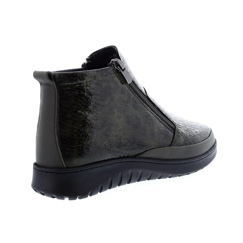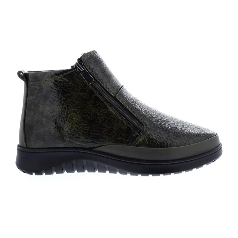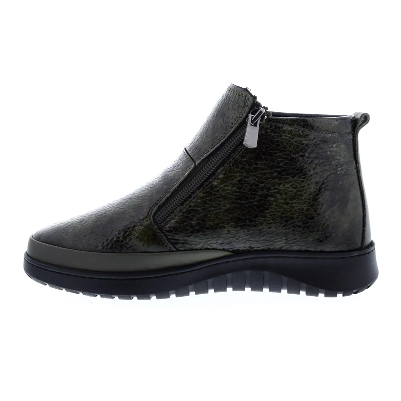 Ez a La Bellini bokacsizma kényelmes viseletet kínál, modern részletekkel. Felsőrésze prémium minőségű, nyomottmintás lakkbőrből készült. A textil bélés és a puha talpbetét gondoskodik a komfortérzetről. A két oldalsó cipzár megkönnyíti a fel- és levételt, miközben praktikus, modern részletként szolgál. Talpa könnyített gumitalp, melynek paraméterei 30/20 mm (sarokmagasság/talpmagasság). Sebastiano cipő webáruház Női cipő
