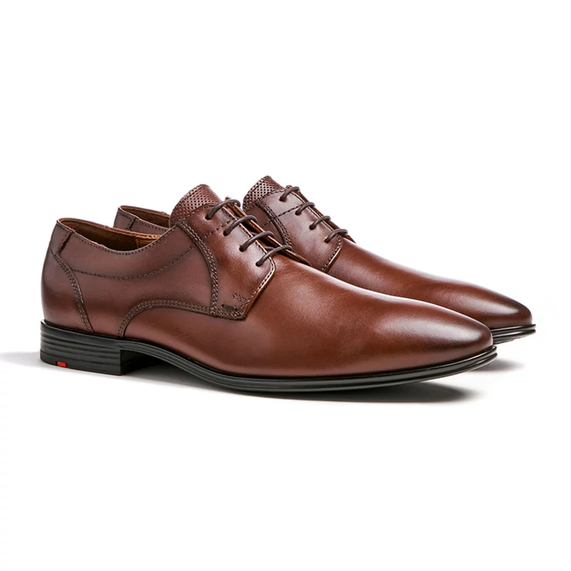 A német Lloyd márka a cipővilág egyik vezető képviselője, a minőséget és a divatot jelenti a lábbelik és kiegészítők világában 1888 óta. A Lloyd cipők jellemzően klasszikus dizájnt, kiváló minőségű bőrt és precíz kidolgozást kínálnak. A Lloyd termékek egyből felismerhetőek a világszerte ismert piros csíkos logójukról. Ez a modell tökéletes klasszikus, elegáns megjelenéssel párosulva. A lábbeli felsőrésze kiváló minőségű természetes bőrből készült, bélése bőr és textil kombináció, talpa gumi, sarokmagassága 25 mm. Csúszásgátló gumitalp kényelmes párnázott érzést kölcsönöz viselőjének, a bőr belső talp optimális hőszabályozást biztosít. A kéreg megóvása érdekében használjon cipőkanalat. Sebastiano cipő webáruház Férfi cipő