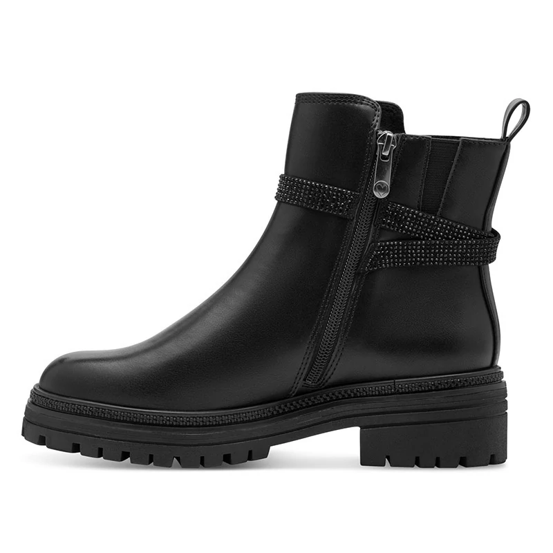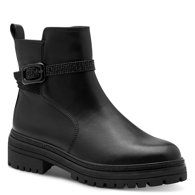 A lábbeli felsőrésze ekológikus bőr és textil, míg bélése textil felhasználásával készült. A sarok 50 mm Sebastiano cipő webáruház Marco Tozzi