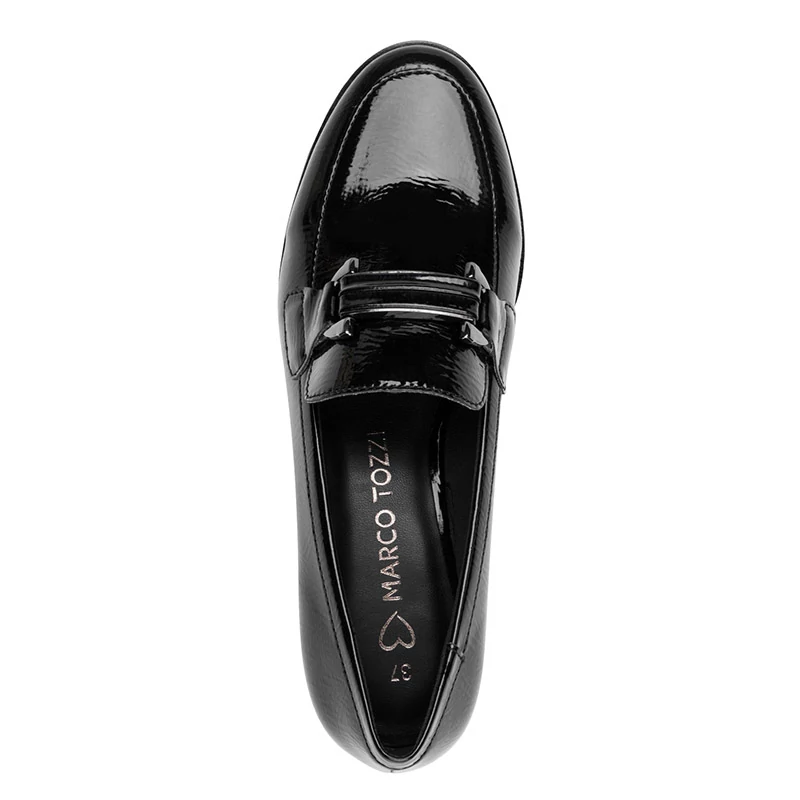 A lábbeli felsőrésze ekológikus bőrből, míg bélése textil felhasználásával készült. A sarok 35 mm Sebastiano cipő webáruház Marco Tozzi