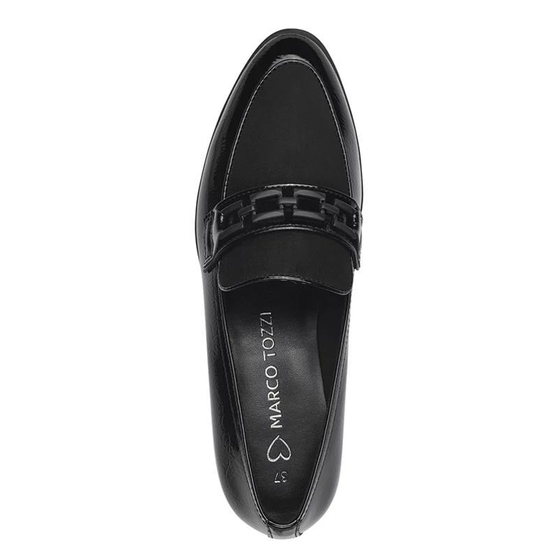 A lábbeli felsőrésze természetes és ekológikus bőrből, míg bélése textil felhasználásával készült. A sarok 35 mm Sebastiano cipő webáruház Marco Tozzi