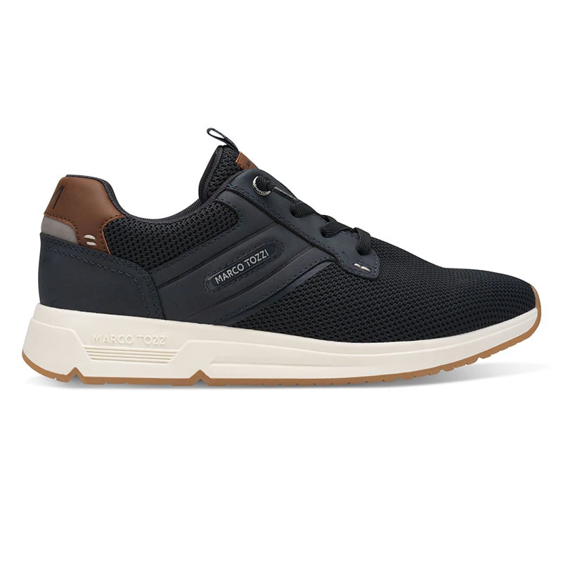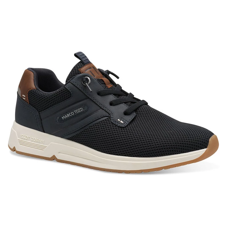 A lábbeli felsőrésze ekológikus bőr és textil, míg bélése textil felhasználásával készült. A sarok 35 mm Sebastiano cipő webáruház Marco Tozzi