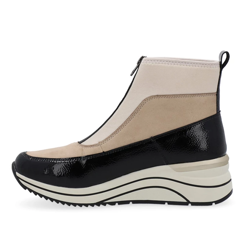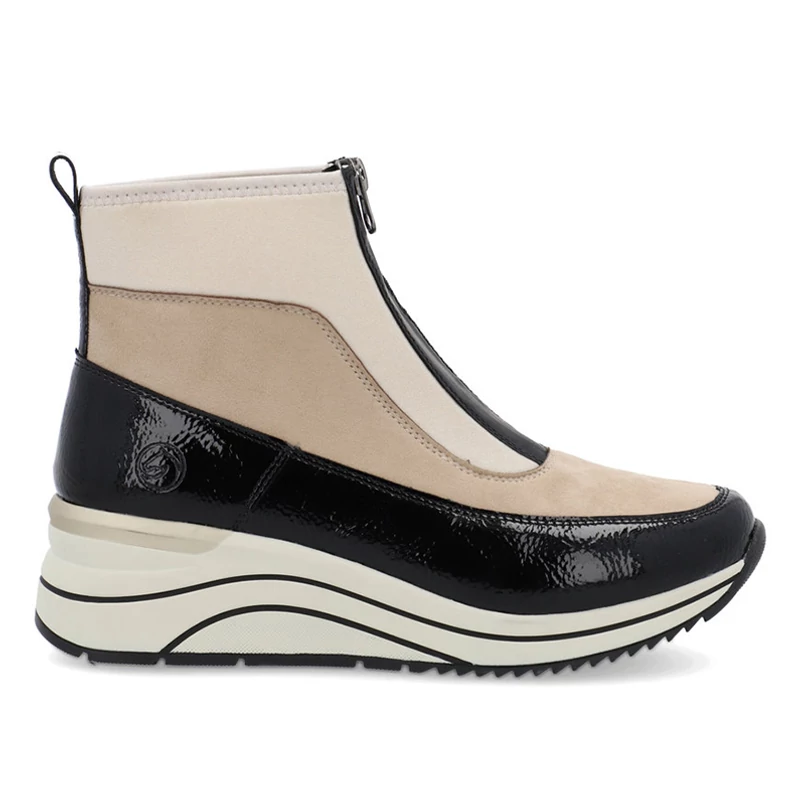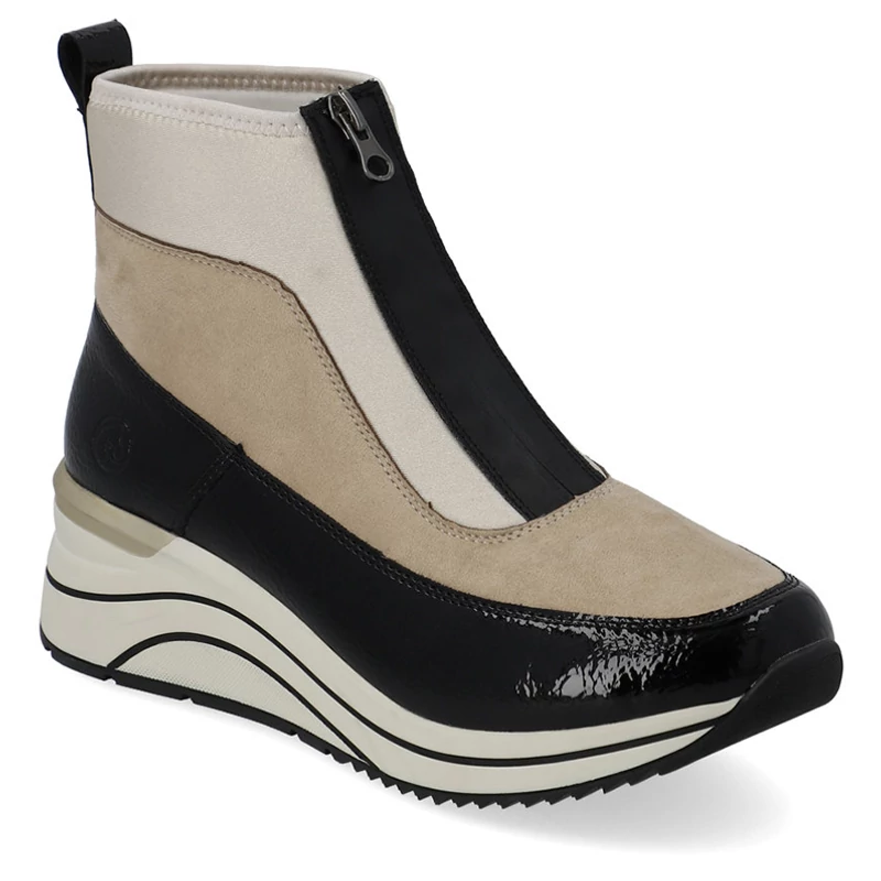 A REMONTE lábbeli a RIEKER márka magasabb kínálata, a lábbeliket a felhasznált anyagok minősége jellemzi.A cipő felső része több különböző anyagú és színű részből áll, de ezek együtt alkotják ennek a bokacipőnek a tökéletes megjelenését. Remonte Soft – egyedülálló, lélegző anyagból készült talpbetét, amely formájával és anyagával komfortérzetet biztosít az egész napos viselet során. A lábbeli H (széles) szélességű Sebastiano cipő webáruház Rieker lábbeli