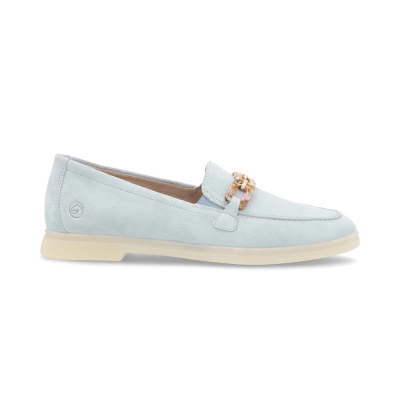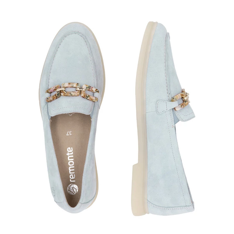 REMONTE cipő - ez a RIEKER márka magasabb vonala, ezt a cipőt a felső anyagok kiváló kombinációja jellemzi. Ezek a RIEKER bőrcipők nemcsak első osztályú minőséget, hanem egyedi dizájnt is kínálnak. A felsőrész égkék színét az azon átívelő gyönyörű feltét díszíti, amely egyéniséget és bájt kölcsönöz a cipőnek. A rugalmas talp kényelmes és ruganyos lépést biztosít, míg a kivehető talpbetét maximális tartást és kényelmet biztosít a lábnak. Sebastiano cipő webáruház Női cipő