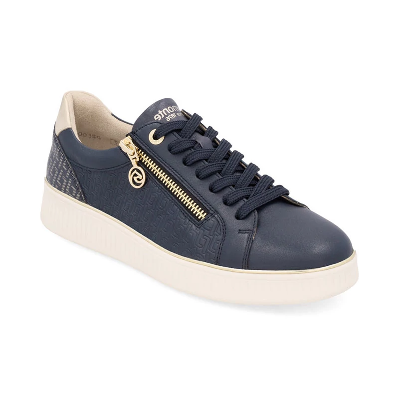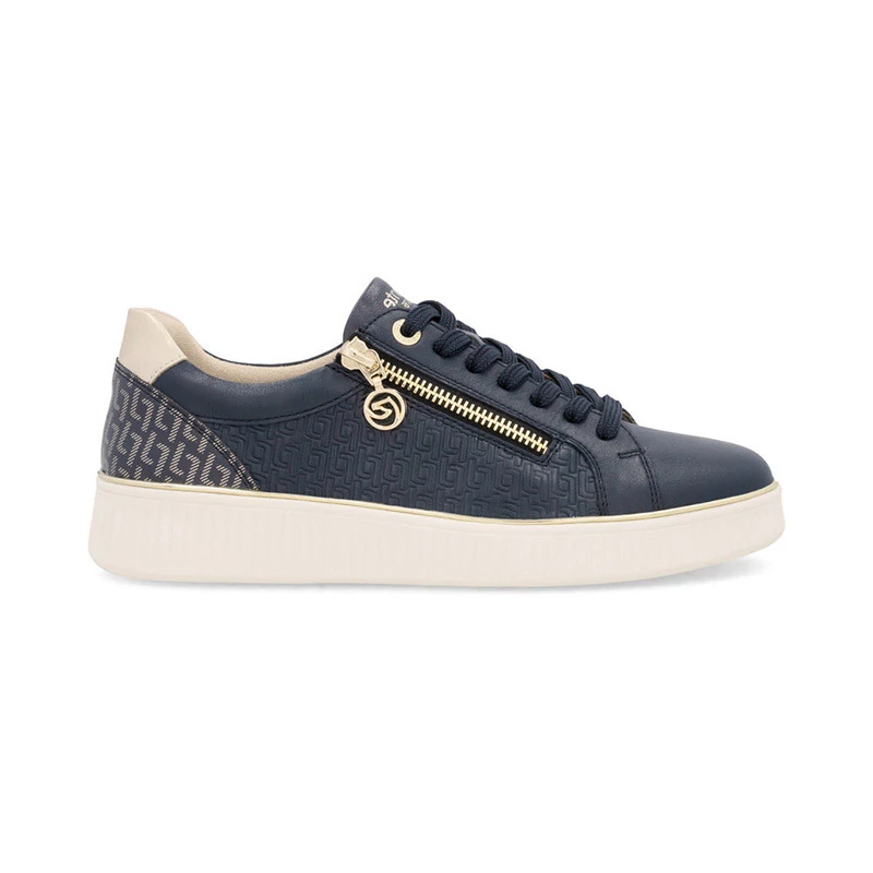 Ezekkel az egyedi tornacipőkkel minden ruhát tökéletessé varázsol. A sötétkék felsőrész eredeti, nyomattal díszített anyag- és színösszetételével lenyűgöz, jellegzetes részlete pedig a cipzáron a márkalogóval ellátott díszítés. Ez a cipzár megkönnyíti a felhelyezést, a fűzés pedig lehetővé teszi, hogy a cipőt az Ön igényei szerint szabja. Sebastiano cipő webáruház Női cipő
