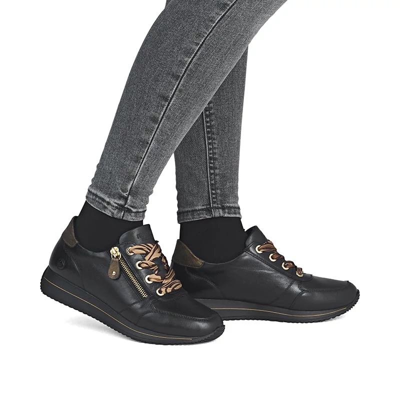 A kiváló minőségű fekete bőr felsőrész és a finoman fényes applikációk kombinációjával, amelyek kifinomult megjelenést kölcsönöznek a cipőnek. A funkcionális oldalsó cipzárnak köszönhetően gyorsan felveheted őket, míg a fűzőrendszer lehetővé teszi, hogy a cipőt az igényeidnek megfelelően igazítsd, és két változatban kapható - klasszikus fekete fűző vagy díszes szalag a különlegesebb megjelenésért. A járáskényelmet a puha, kivehető talpbetét garantálja, amely tökéletesen alkalmazkodik a láb formájához. Ezek a cipők ideális megoldást jelentenek azoknak a nőknek, akik az elegancia, a variálhatóság és a mindennapi kényelem kombinációját keresik. Sebastiano cipő webáruház Rieker lábbeli