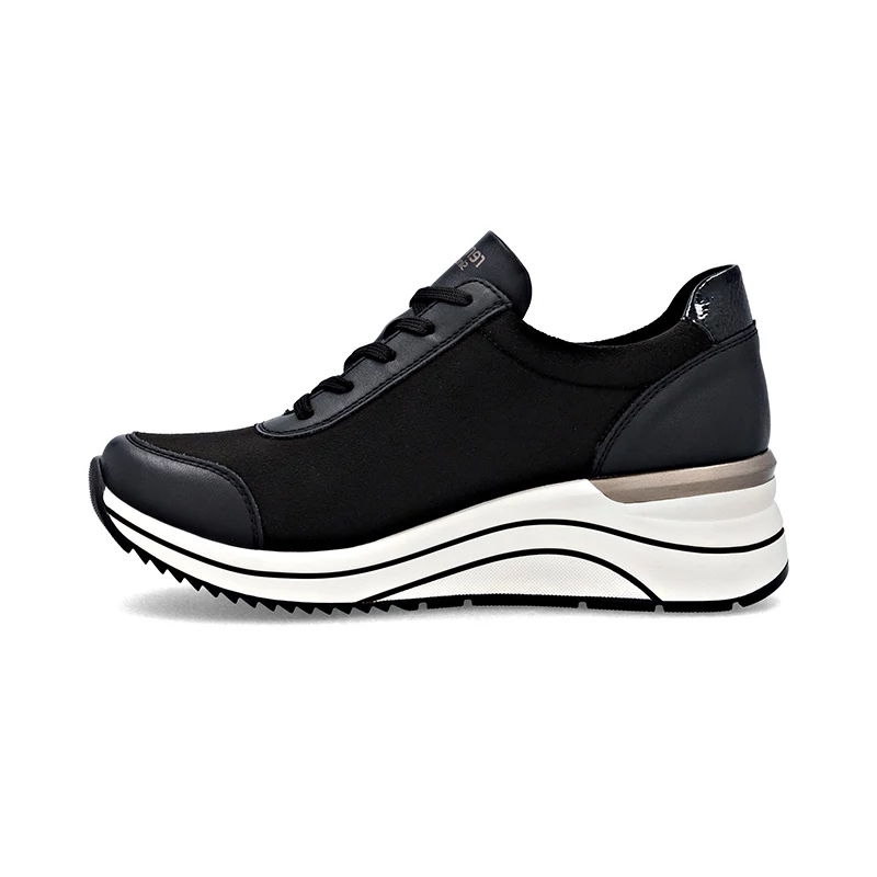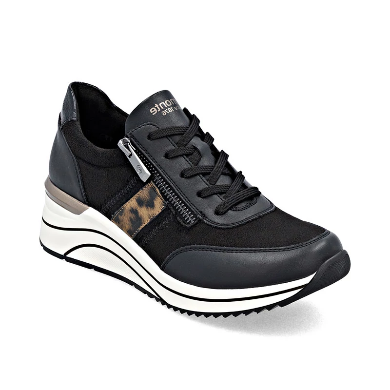 REMONTE cipők - ez a RIEKER márka magasabb vonala, amelyet a felsőrész anyagainak kiváló kombinációja jellemez. Ha a kivételes dizájn és a mindennapi kényelem kombinációját keresed, ezek a Rieker sportcipők a megfelelő választás. Első pillantásra megragadják a tekintetet a fekete anyagok, a lágy fény és a divatos állatmotívum ötletes kombinációjával, amely kiemeli eredeti karakterüket. A dizájnt a magasabb talp dinamikus vonalai teszik teljessé, amelyek modern megjelenést kölcsönöznek a modellnek. A funkcionális oldalsó cipzár a fűzőkkel kombinálva könnyű felvételt és ideális illeszkedést biztosít a lábhoz. Felvétel után egész napos kényelmet élvezhetsz a puha, kivehető talpbetétnek, a rugalmas ütéscsillapító talpnak és a kényelmes, szélesebb szabásnak köszönhetően, amely egész napos kénye Sebastiano cipő webáruház Rieker lábbeli