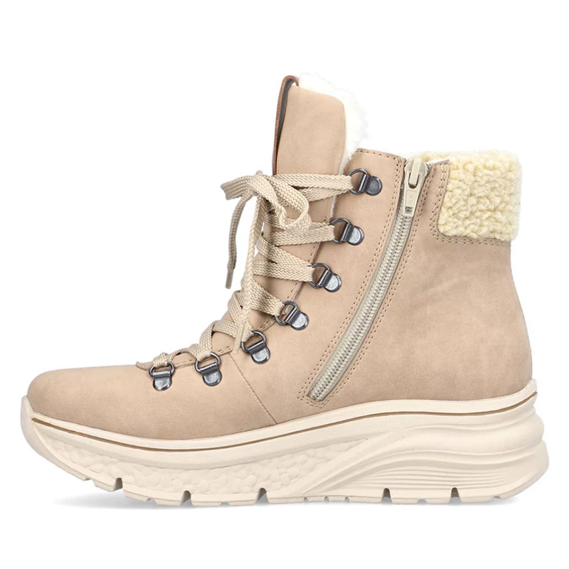 Divatos, kényelmi hétköznapi viselésre ajánlott női bakancs, 30 mm sarokmagassággal.Felsőrésze természetes bőr, bélése textil. Igazán kényelmes, közepesen nehéz lábbeli. Vízállósága mérsékelt! Ahhoz, hogy sokáig tartós maradjon lábbelije, használjon cipőkanalat. Sebastiano cipő webáruház Rieker lábbeli