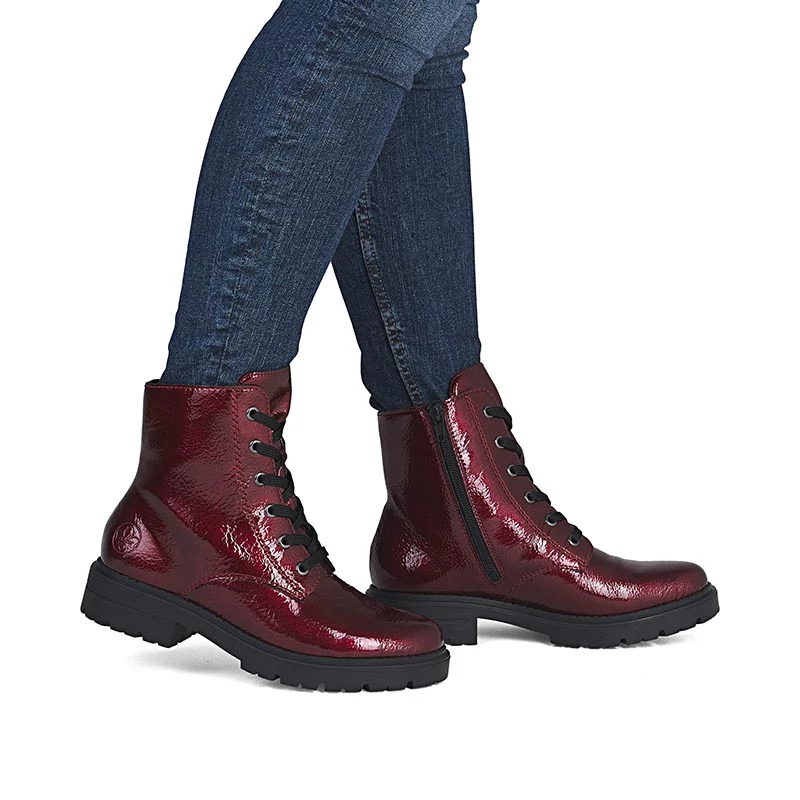 Ezeknek a RIEKER bokacsizmáknak az eredeti megjelenését az élénkpiros szín és a hatékony, fényes felület adja, amely azonnal magára vonzza a tekintetet. A praktikus oldalsó cipzár a fűzőrendszerrel kombinálva könnyű fel- és levételt biztosít, és az igényekhez igazítja a lábat. A belső textil bélés kellemes érzetet biztosít, míg a rugalmas, párnázási funkcióval és jellegzetes mintázattal ellátott talp stabilitást és kényelmet biztosít minden lépésnél. Ez a modell ötvözi a jellegzetes megjelenést és a funkcionalitást - nagyszerű társ a városi sétákhoz és a mindennapi viselethez. Sebastiano cipő webáruház Rieker lábbeli
