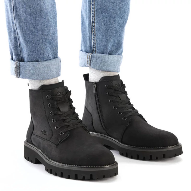Azoknak a férfiaknak, akik a gardróbjukban a fekete klasszikusokat részesítik előnyben, ez a RIEKER bokacsizma ideális választás. Bőr felsőrészük diszkrét varrásvonalakkal és a márkalogóval stílusos kiegészítője a ruhatárának. Az oldalán praktikus cipzárral ezek a cipők könnyen felvehetők, fűzéssel pedig tetszés szerint állíthatod, viselve élvezni fogod a talpbetét puhaságát és a magasabb talp stabilitását. Ez a bokacsizma tökéletes választás a mindennapi viselethez, amikor egyszerre szeretne stílusosnak tűnni és kényelmesen érezni magát. Sebastiano cipő webáruház Rieker lábbeli