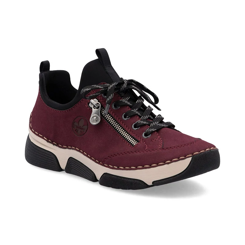 Ezek a piros Rieker tornacipők első pillantásra magára vonják a tekintetet eredeti kidolgozásukkal. A cipőt dombornyomott Rieker logó, díszes cipzár díszíti, a talp pedig kontrasztos, világos cérnával van varrva. A rugalmas szélnek köszönhetően a cipő gyorsan és egyszerűen felvehető. A puha bőr talpbetét kivételes kényelmet biztosít, így egész nap kényelmesen fogod érezni magad járás közben. Ezek a tornacipők nagyszerű választások mindennapi viseletre, stílusos dizájnjuk pedig számos ruhatárad darabját kiegészíti. Akár munkába, akár városi sétákra, akár szabadidős tevékenységekhez viseled őket, ezek a Rieker tornacipők soha nem fognak csalódást okozni. Rendhagyó színükkel és kényelmes elemeikkel minden helyzetben magabiztosnak és kényelmesnek fogod érezni magad. Sebastiano cipő webáruház Rieker lábbeli