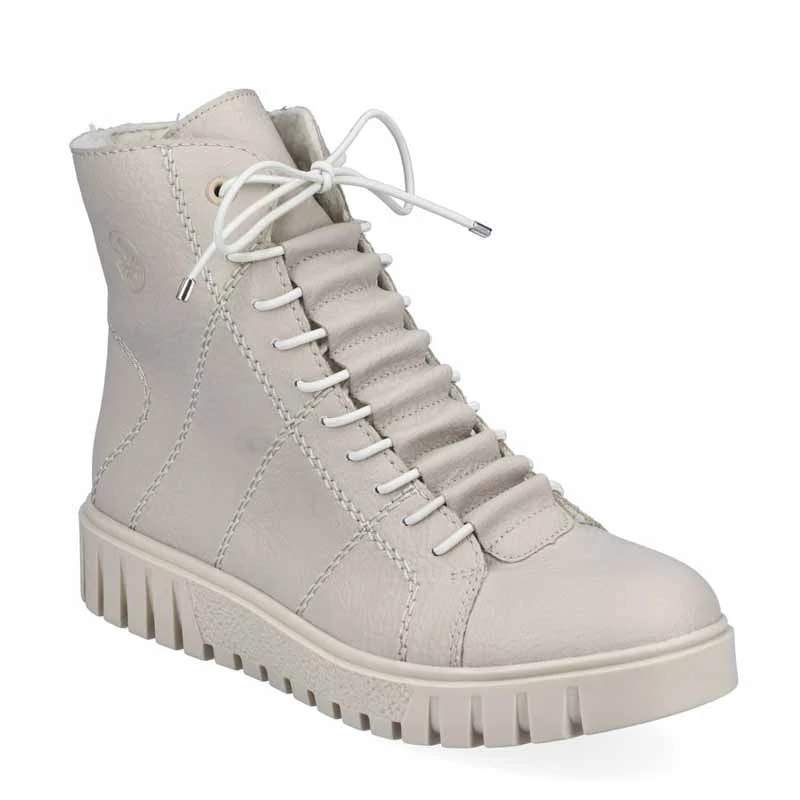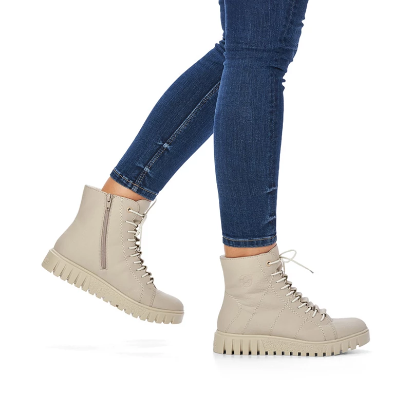 Első pillantásra ezek a RIEKER női cipők lenyűgöznek felsőrészükkel, amelyet jellegzetes varrások díszítenek, ami érdekes vonalakat hoz létre a cipőn. A nem hagyományos fűzés rugalmas szalaggal és belül funkcionális cipzárral a könnyebb viselést szolgálja. Ezenkívül értékelni fogja a szőrmével ellátott bélést is, amely kedvezőtlen időben is melegen tartja. A talpbetét kellemesen puha és egész napos kényelmet garantál. A talp kb 3,5 cm magas és az Antistress technológiának köszönhetően könnyű, rugalmas és rálépéskor elnyeli az ütéseket. Sebastiano cipő webáruház Rieker lábbeli
