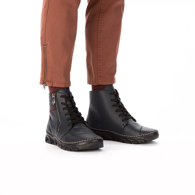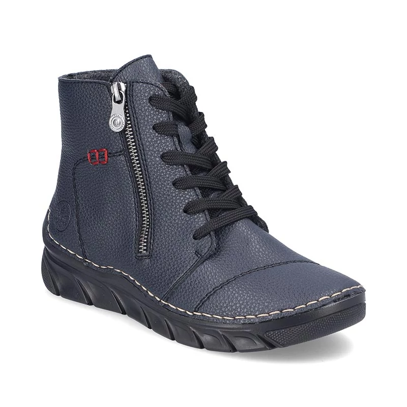 A RIEKER cipők sötétkék felsőrészét steppelt vonalak, jellegzetes piros részletek és diszkrét márkalogó díszíti - ez a kombináció divatos megjelenést kölcsönöz, amely kiemeli mindannyiótok báját. A praktikus fűzőrendszer és a külső részen található cipzár lehetővé teszi a lábhoz való pontos illeszkedést és a könnyű felvételt. A tökéletes viseleti kényelmet a kényelmes textil talpbetét és az ütéscsillapító talp biztosítja, amelyek minden lépésnél kényelmet biztosítanak, így ideális választást jelentenek a mindennapi viseletre. Sebastiano cipő webáruház Rieker lábbeli