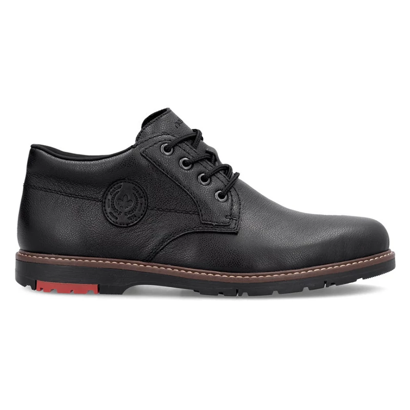 Ez a RIEKER modell a klasszikus eleganciát képviseli a férfi lábbelikben. A fekete bőr felsőrész a márka logójával letisztult megjelenést kölcsönöz, amely számos alkalomra alkalmas. A fűző és az oldalsó cipzár lehetővé teszi a könnyű felvételt és a cipő szélességének az Ön igényeinek megfelelő beállítását, ami nagyszerű tulajdonság a kényelem és a stabilitás érdekében. Viselésük után élvezheti a kellemesen puha és bőr talpbetétet, amely nemcsak kényelmet, hanem tartást is biztosít a lábának. Az ütéselnyelő külső talp egy másik kulcsfontosságú jellemzője ennek a modellnek. Ez biztosítja, hogy lábai védve legyenek a fáradtságtól még hosszú séták vagy hosszú munkanapok során is. Ez a modell nagyszerű választás minden férfi számára, aki értékeli a klasszikus stílus, a kényelem és a funkcion Sebastiano cipő webáruház Rieker lábbeli