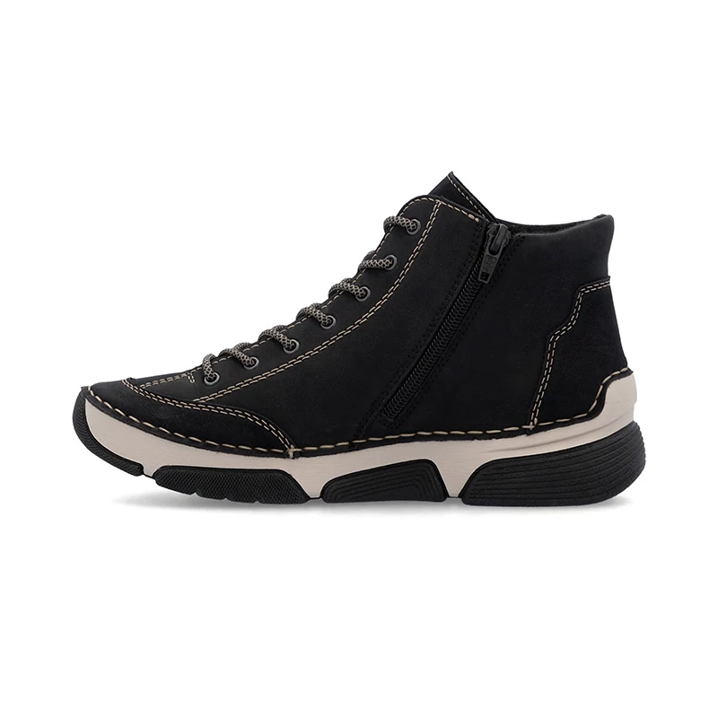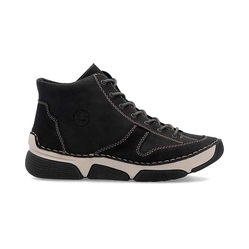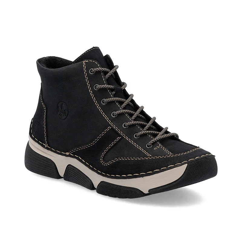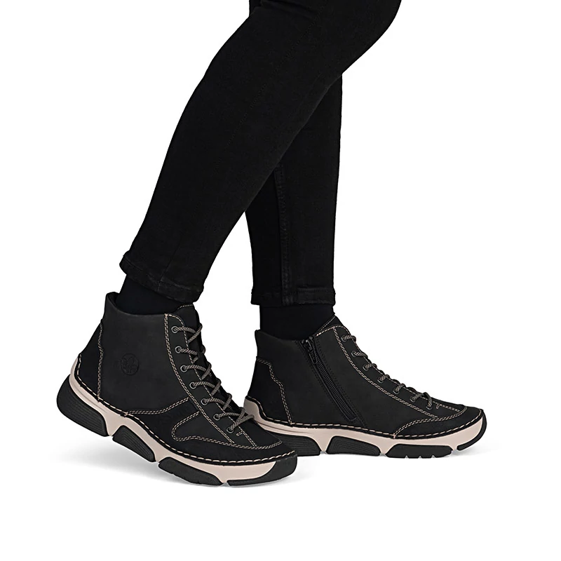 Ezek a fekete RIEKER bokacsizmák a modern dizájnt ötvözik a praktikummal, finom részletekkel, például varrott vonalakkal és diszkrét márkalogóval díszítve, lenyűgöző megjelenést kölcsönözve. A fűzőrendszer az oldalsó cipzárral együtt könnyű felvételt biztosít, és tökéletesen illeszkedik a láb formájához. A kellemes textil talpbetét kényelmet biztosít, míg az ütéscsillapító talp hozzájárul a stabilitáshoz és a kényelemhez járás közben. Ezek a cipők nagyszerű választások mindennapi viseletre, ideálisak azoknak a nőknek, akik a stílusos és funkcionális lábbeliket kedvelik. Sebastiano cipő webáruház Rieker lábbeli