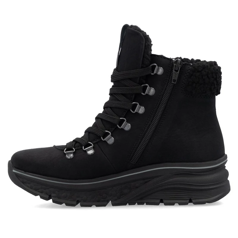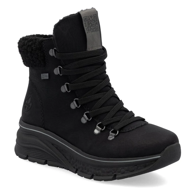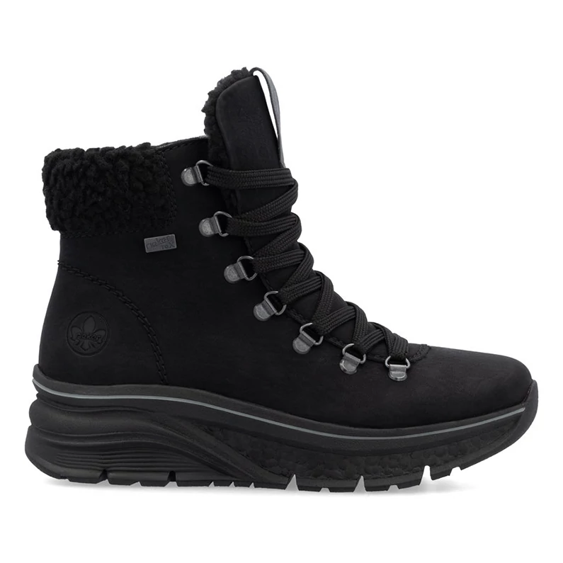 A vízálló membránnal ellátott cipő fekete felülete szépen varrott, a sarkán pedig dombornyomott márkalogó található. A cipő belső oldalán található cipzár segítségével megkönnyítheti a cipő felhúzását, a fűzésnek köszönhetően pedig még jobban személyre szabhatja a cipőt az Ön igényei szerint. A puha, kivehető memóriahabos talpbetét és a meleg bélés membránnal gondoskodik arról, hogy egész nap jól érezd magad. Sebastiano cipő webáruház Rieker lábbeli
