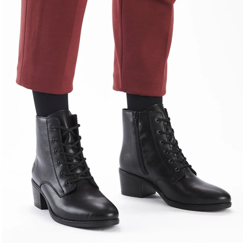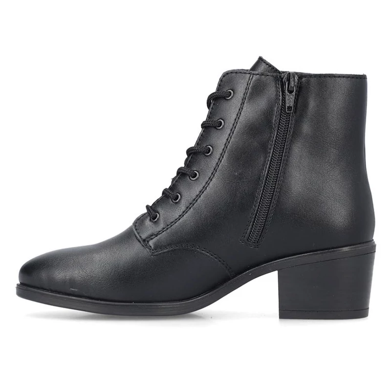 Az egyszerűségben rejlik a szépség, pontosan ezt mondja ez a fekete Rieker bokacsizma. Egyszerű kialakításuknak és kiváló minőségű kidolgozásuknak köszönhetően ruhatára nélkülözhetetlen részévé válnak. A cipő belsejében található funkcionális cipzár megkönnyíti a cipő felvételét. A puha talpbetét és a bársony bélés garantálja a kényelmet minden lépésnél. Sebastiano cipő webáruház Rieker lábbeli