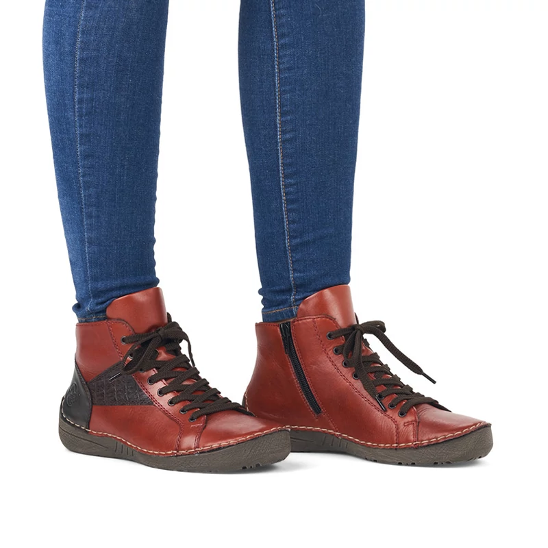 Az őszi napok nem múlhatók el ezen eredeti bokacsizmák nélkül, kellemes színkombinációval és maximális kényelemmel varázsolnak el. A barna sima felsőrész sötétebb elemekkel és nyomott márkalogóval díszített. A cipőket az oldalsó cipzárnak köszönhetően könnyű felvenni, és fűzéssel közvetlenül a lábához igazíthatja. Sebastiano cipő webáruház Rieker lábbeli