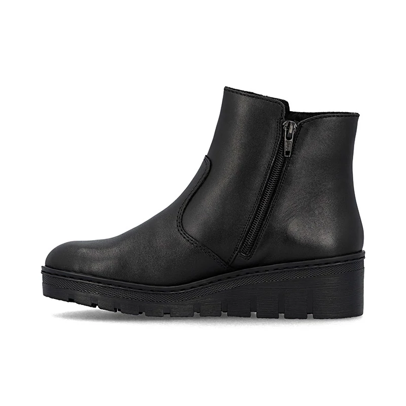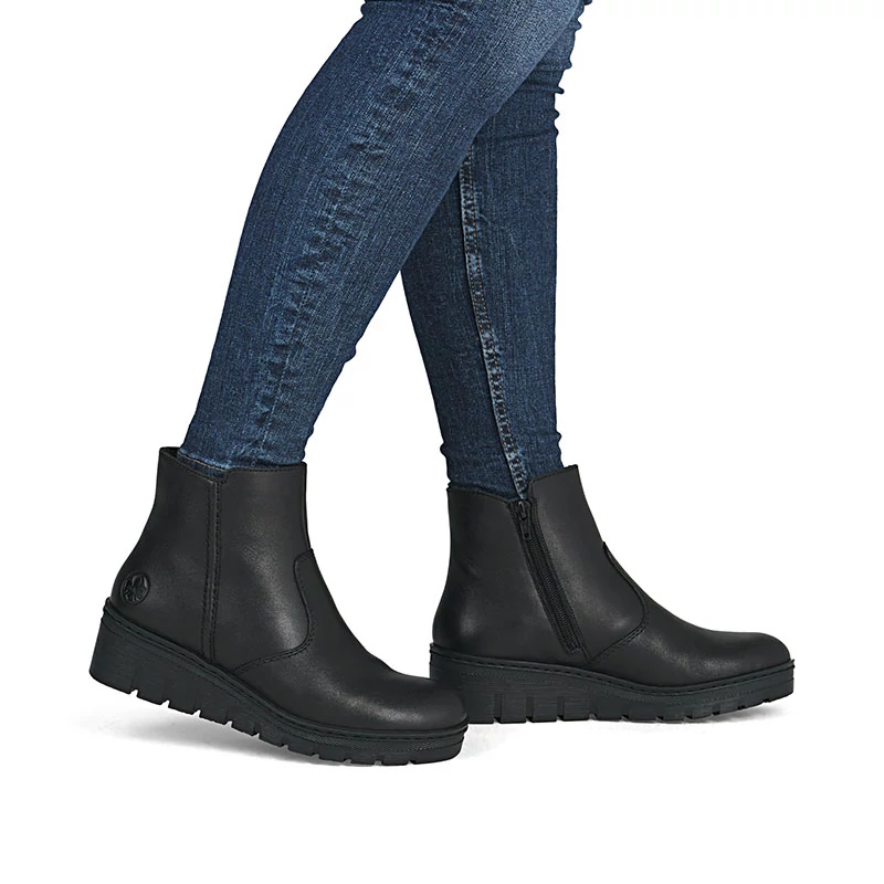 Ez a RIEKER modell bizonyítja, hogy még a látszólagos egyszerűség is lehet rendkívül kifinomult és stílusos. A fekete bőr felsőrész a részletekre és a minőségre való odafigyeléssel készült, vizuális tisztaságát finom díszvarrás és diszkrét nyomtatott márkalogó hangsúlyozzák, ami a RIEKER márka eredetiségének jele. Viselése során nemcsak a vonzó megjelenést, hanem a praktikus részleteket is értékelni fogja. A belső cipzár úgy van kialakítva, hogy a cipőt könnyedén, erőfeszítés nélkül felvehesse, ami felbecsülhetetlen értékű a mindennapi használatban. Felvétel után azonnal kényelmesen fogja érezni magát, amit a kényelmes talpbetét és a meleg bélés biztosít, amelyek még hidegebb napokon is melegen tartják a lábát. Sebastiano cipő webáruház Rieker lábbeli