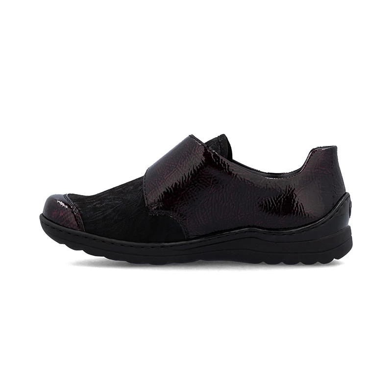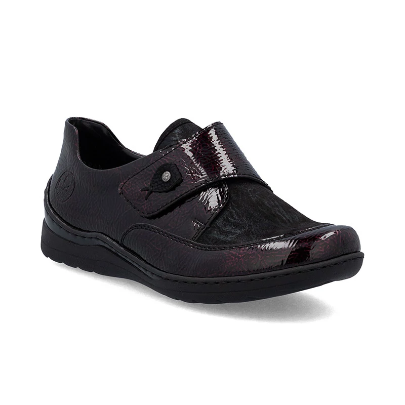 A Rieker cipők elegáns dizájnjával és magas fokú kényelmével fognak lenyűgözni. A felsőrész fényes és matt anyag kombinációjából készült, finom mintázattal, ami egyedi megjelenést kölcsönöz nekik. A lábfejen átívelő pánt díszítőeleme és a sarokon található dombornyomott márkalogó kiemeli a modell stílusát. A tépőzárnak köszönhetően a felvétel gyors és kényelmes, a cipőt pedig az igényeidhez igazíthatod. A szélesebb szabású, puha bőr talpbetét egész napos viselés során is kényelmet biztosít, így maximális kényelmet élvezhetsz. Ezek a bokacsizmák ideális választások mindennapi viseletre, akár munkanapokra, akár szabadidőre, mert ötvözik a minőséget, a kényelmet és a stílust. Sebastiano cipő webáruház Rieker lábbeli