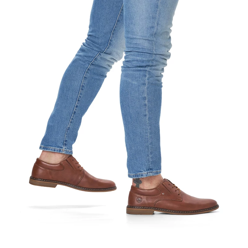 A lábbeli felsőrésze természetes és ekológikus bőrből míg bélése textil felhasználásával készült. A talp 25 mm. A lábbeli G bőségű. A klasszikus fazonú felsőrész a gumi betétnek köszönhetően igazán kényelmes viseletet biztosít viselője számára. Sebastiano cipő webáruház Rieker lábbeli