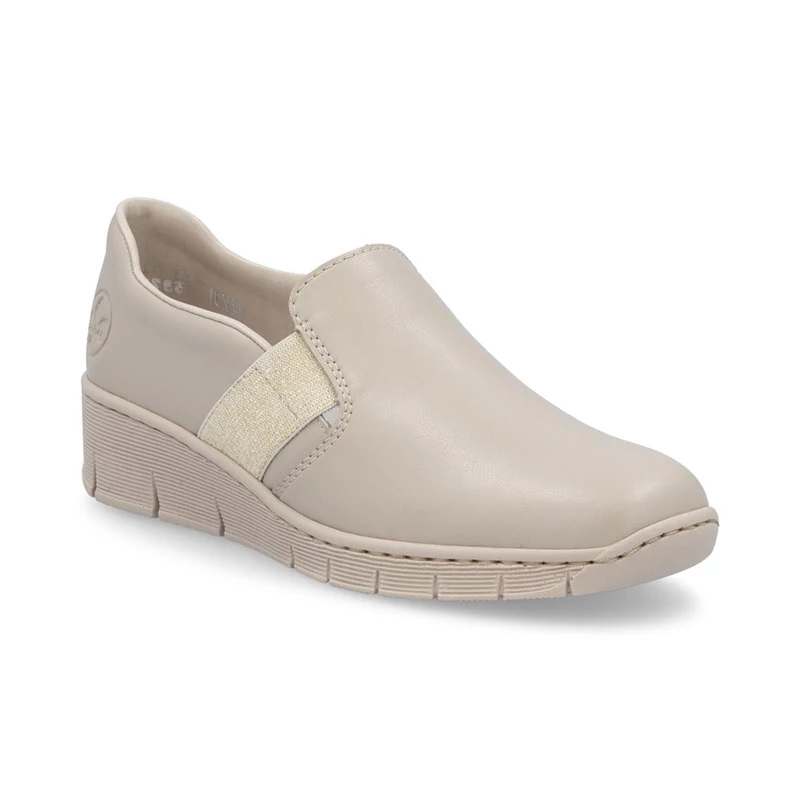 Ezek a Rieker bőrcipők az elegancia és a kényelem szimbólumai. A sima felsőrészt az oldalán rugalmas aranyszínű gumiszalagok egészítik ki, amelyek nemcsak tökéletesítik a cipő megjelenését, hanem megkönnyítik a felhelyezését is. A puha bőr talpbetét és a magasabb talp ütéscsillapító technológiával egész napos kényelmet biztosít. Ezek a cipők a divatos megjelenés és a funkcionalitás tökéletes kombinációja, amely magabiztosan és eleganciával kíséri majd el Önt. Antistressz - négy antistressz tulajdonságának köszönhetően - könnyedség, rugalmasság, tágasság és kiváló lengéscsillapítás - a RIEKER cipők kényelmesebb sétát kínálnak. Sebastiano cipő webáruház Rieker lábbeli