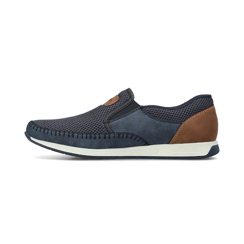 Kínálatunkban ez a mokaszin modell, amely a forró nyári napokra is alkalmas. A sima és textil részekből álló felsőrész, amely a nagyobb kényelem érdekében perforált, a sarokrészen kontrasztos résszel egészül ki. A cipő összképét fehér talp egészíti ki. Kívül és belül is elasztikus szalagok vannak varrva, amelyek segítik a cipő felhúzását és közvetlenül a lábához igazítását. Antistressz - négy antistressz tulajdonságának köszönhetően - könnyedség, rugalmasság, tágasság és kiváló lengéscsillapítás - a RIEKER cipők kényelmesebb sétát kínálnak. Sebastiano cipő webáruház Rieker lábbeli