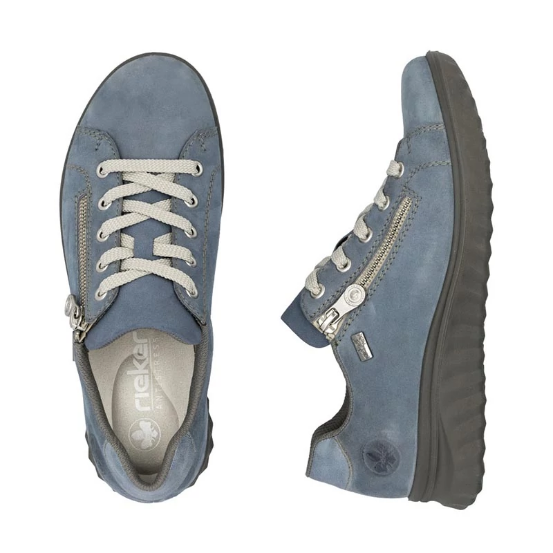 Ezek a stílusos Rieker bőr tornacipők minden ruhatárat remekül kiegészítenek. Kék színük friss és modern megjelenést biztosít. A funkcionális cipzár és a fűzés lehetővé teszi a könnyű és gyors felhelyezést, míg a kivehető puha talpbetét növeli a kényelmet, ami fontos a hosszú távú kényelem érdekében járás közben. A vízálló rétegnek köszönhetően nem kell tartania a rossz időjárástól, ami növeli praktikumukat és tartósságukat. Ezek a cipők ötvözik a stílusos megjelenést a kényelmes viselettel, és ideális választás a mindennapi használatra, egy kis luxussal.Antistressz - négy antistressz tulajdonságának köszönhetően - könnyedség, rugalmasság, tágasság és kiváló lengéscsillapítás - a RIEKER cipők kényelmesebb sétát kínálnak. Sebastiano cipő webáruház Rieker lábbeli