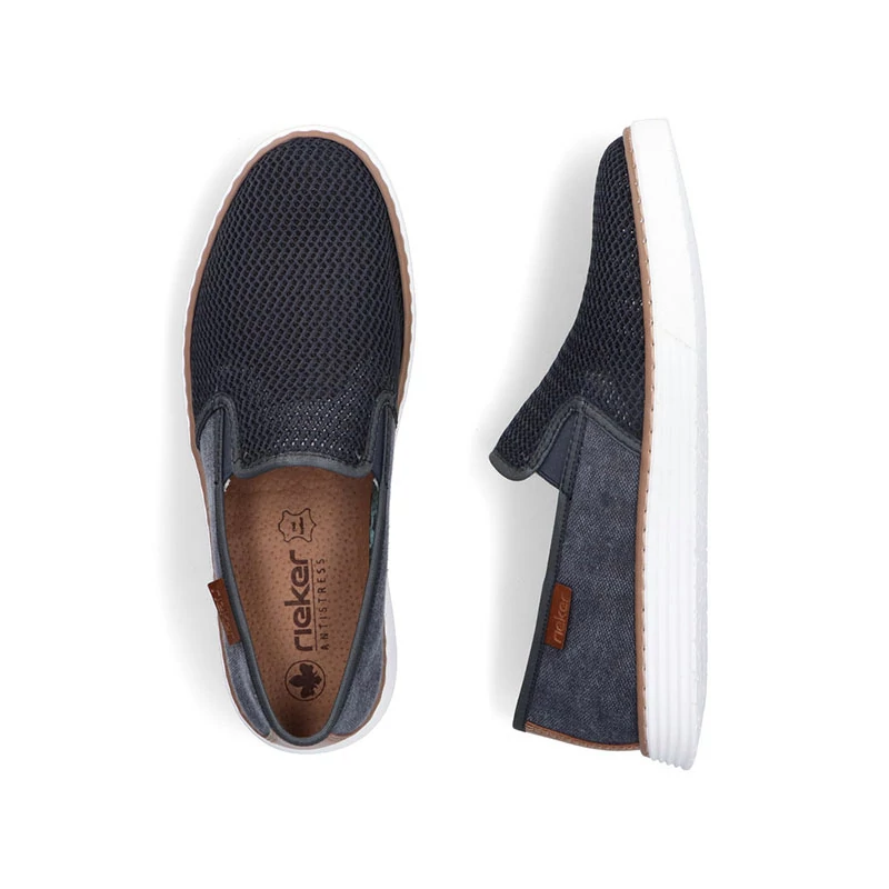 A Rieker cég Németország legjelentősebb cipőgyártó cégei közé tartozik. Kollekciója minden korosztály számára, hétköznapi viseletre szolgáló modellekből áll. A lábbeli felsőrésze textil és ekológikus bőr míg bélése textil felhasználásával készült. A talp 27 mm. Sebastiano cipő webáruház Rieker lábbeli
