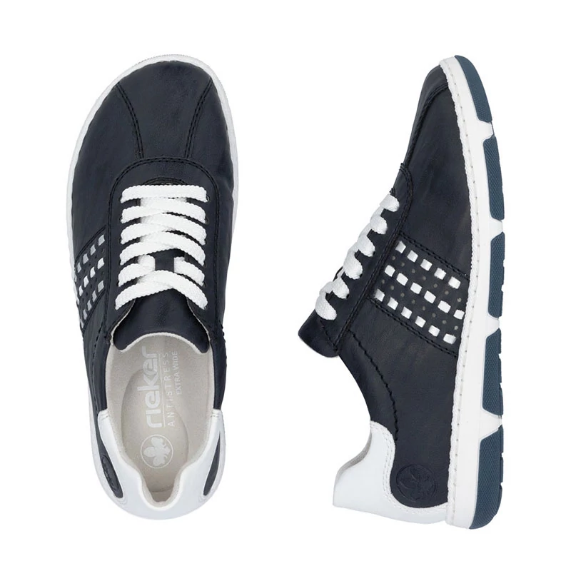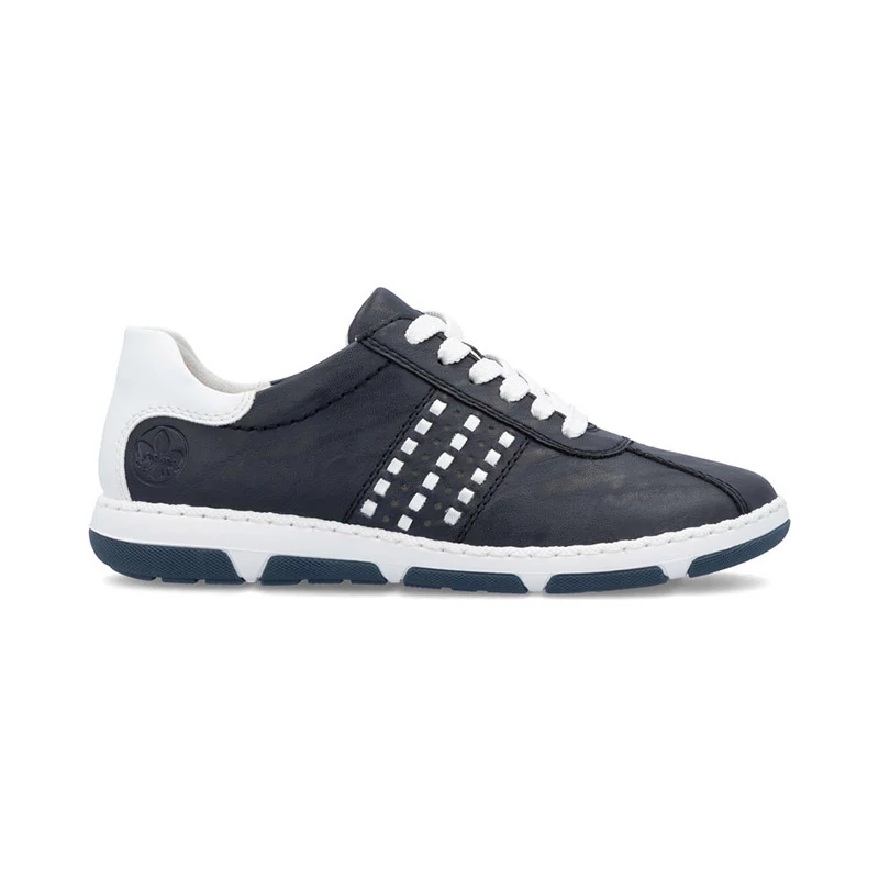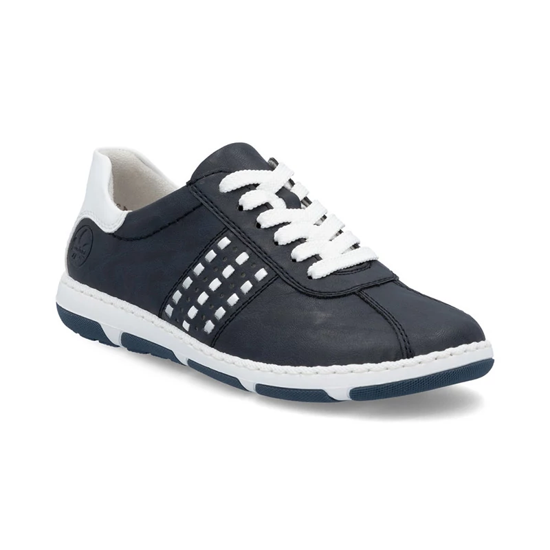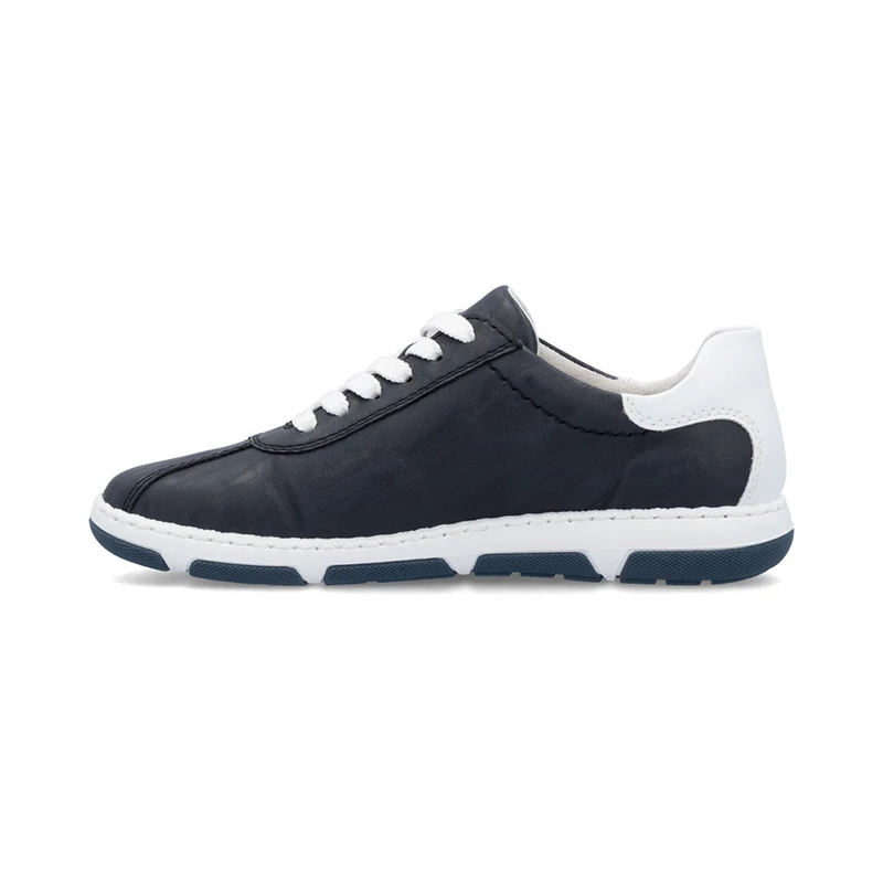 Ezek a stílusos Rieker tornacipők nagyszerű kiegészítői lesznek minden cipőtartónak. A sima felsőrész kontrasztos fehér részekkel van kiegészítve, amelyek friss és modern megjelenést kölcsönöznek a cipőnek. A fűzés lehetővé teszi a cipők egyszerű és gyors beállítását az Ön igényei szerint. A kivehető puha talpbetét növeli a kényelmet, ami fontos a hosszú távú kényelem érdekében járás közben. Sebastiano cipő webáruház Rieker lábbeli