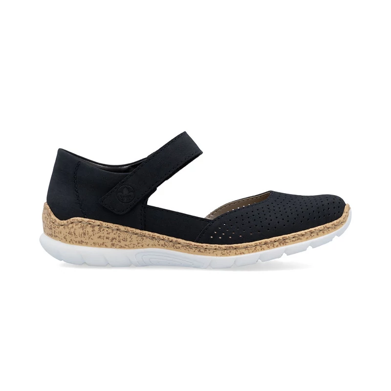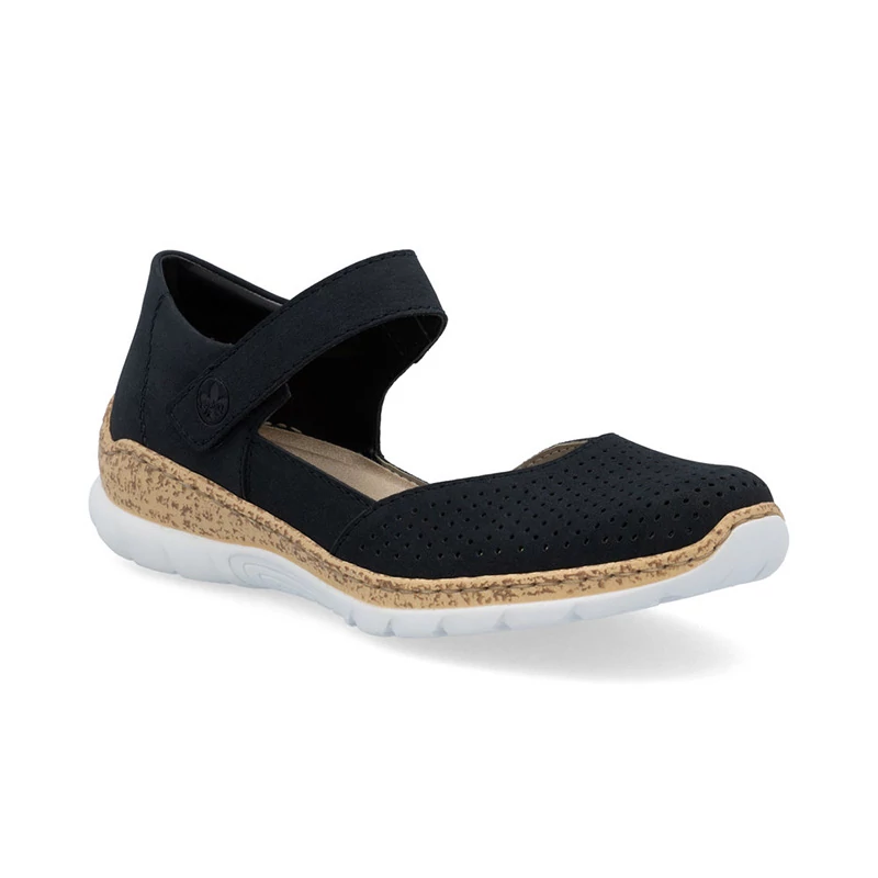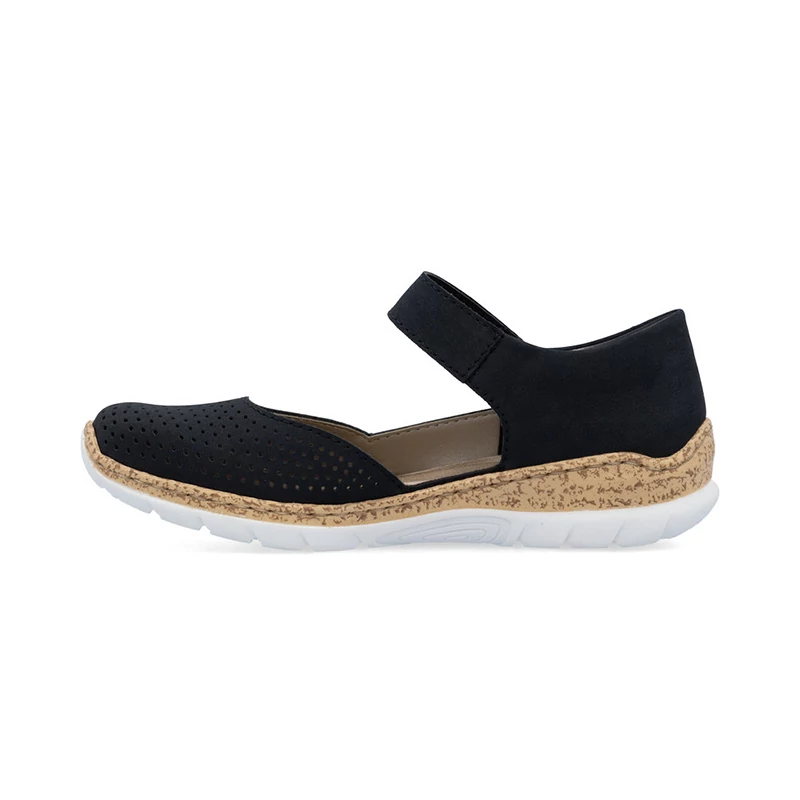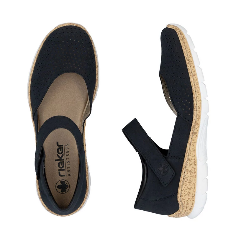 A minimalista perforációval és finom márkalogóval díszített sötétkék felsőrész elegáns megjelenésű. A lábfejen áthúzott tépőzáras pánt biztosítja a kényelmes és stabil illeszkedést. A földöntúli puha memóriahabos talpbetét kiváló kényelmet biztosít, amely alkalmazkodik a láb formájához, az egyedi megjelenésű talp pedig hatékonyan nyeli el az ütéseket járás közben, így minden lépésnél maximális kényelmet biztosít Sebastiano cipő webáruház Rieker lábbeli