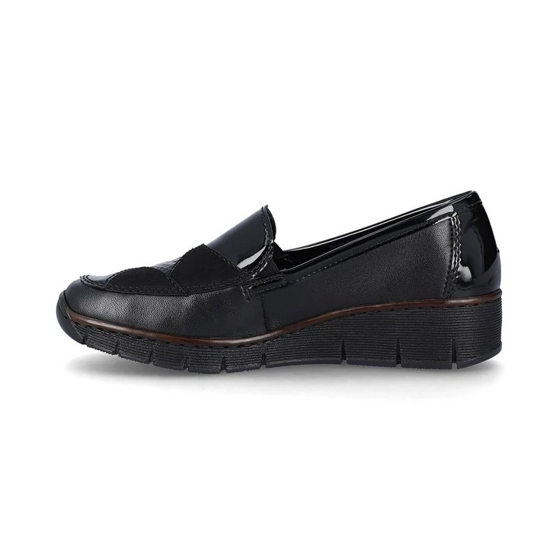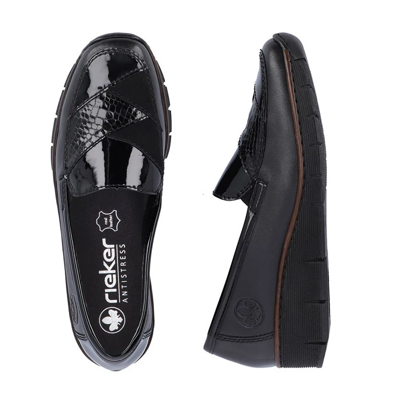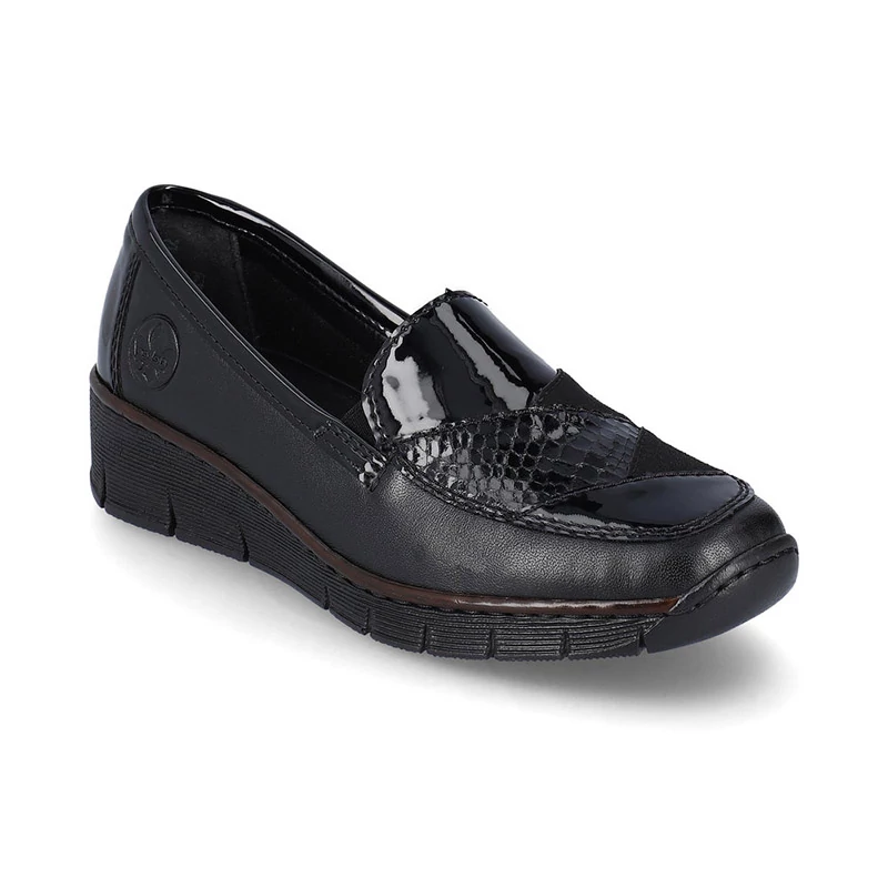 Mindegyikünknek szüksége van ezekre a Rieker női cipőkre a ruhatárunkban. A rugalmas guminak köszönhetően felgyorsítja a felvétel folyamatát és biztosítja a cipő tökéletes illeszkedését. Első pillantásra a bőr felsőrészen a matt és lakkozott anyagfeldolgozás lenyűgöző kombinációja mindenképpen felkelti a figyelmet. Sebastiano cipő webáruház Rieker lábbeli