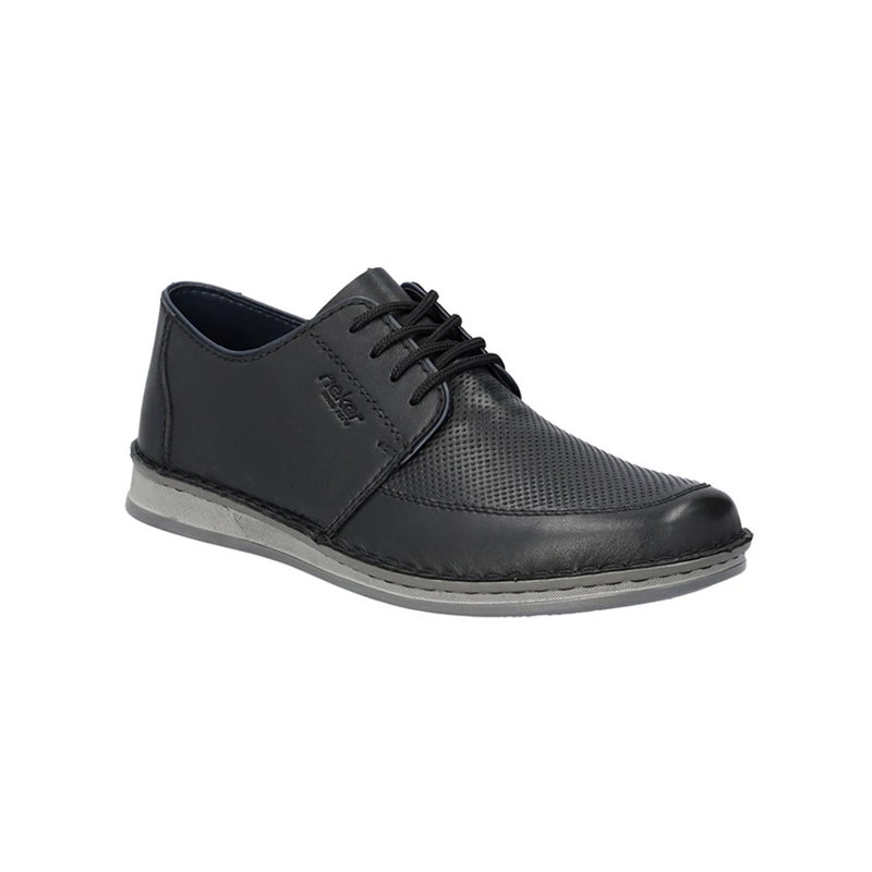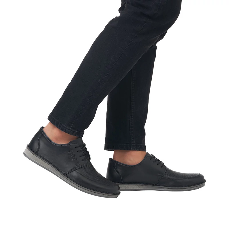 Az egyszerűségben rejlik a szépség, ennek a modellnek a tervezőit ez vezérelte. Fekete, sima felsőrész felületi perforációval, finom varrással és az oldalán nyomott márkanévvel díszített. A cipőt a cipőfűzővel könnyedén állíthatod, a komfortérzetet minden lépésnél a puha, bőr talpbetét biztosítja. Imádni fogja ezt a modellt, köszönhetően annak, hogy könnyedén összeillesztheti ruháival. Sebastiano cipő webáruház Rieker lábbeli