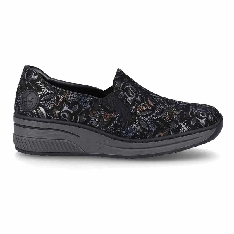 A Rieker márka ezzel a darabjával garantáltan egy lépést sem fogsz félretenni, mert a felsőrész irizáló dizájnja biztosítja bármelyik ruhád újjáéledését. Az oldalt bevarrt gumi, a puha bőrbetét és a magas rugalmas talp biztosítja a kényelmet a teljes viselet idejére. Akár kényelmes farmer, akár hosszú szoknya passzol a cipőhöz. Sebastiano cipő webáruház Rieker lábbeli